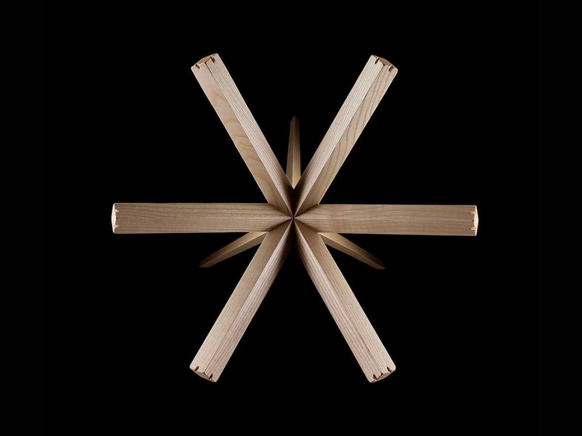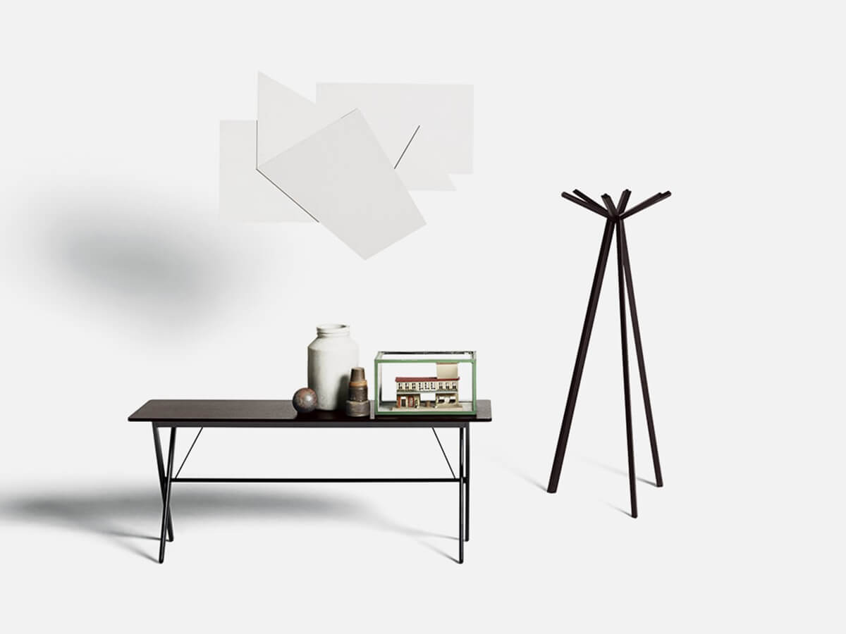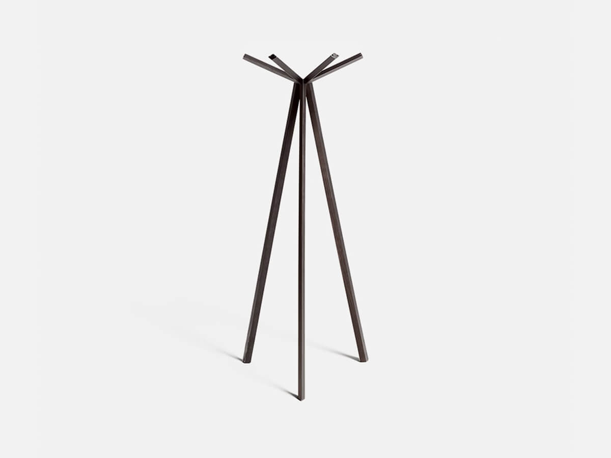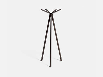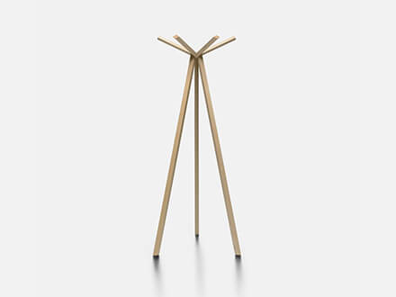 The Rokumaru coat stand, designed by Nendo for De Padova, is a functional and poetic piece of furniture. Inspired by the forms of nature, filtered through an all-oriental symbolism, the Rokumaru coat hanger recalls the stylized image of a tree. It features a solid ash wood frame with six angled and cut-off branches at the ends, providing ample space for hanging jackets and coats. The six branches resemble the rays of an imaginary circumference: in Japanese the word "roku" indicates the number six, while "maru" means "circle". The coat hanger is available in light or wenge-stained wood, while the thermoplastic feet provide it with a stable base.