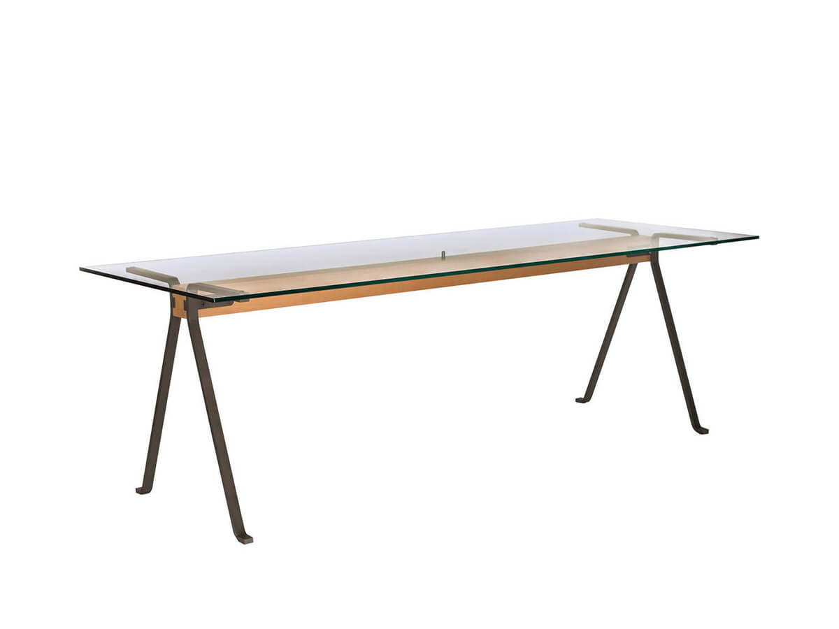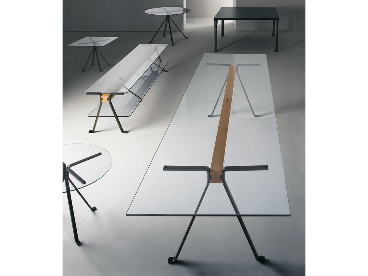 A strong piece of furniture, with a personal and self-confident cut, capable of encompassing the taste of our time thanks to the use of decisive lines. Frate is a table by Driade produced in collaboration with Enzo Mari. It is part of a collection of the same name that stands out for the various tops made of transparent glass and supports in metal profiles. The original design dates back to 1973, but Driade has been able to keep this model alive and always current, making it one of the great icons of the brand today.