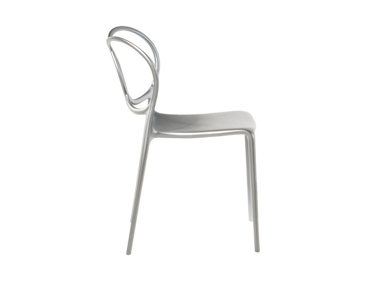 A playful and particularly functional piece of furniture, capable of enclosing in a single concept, the beauty of a simple object which nonetheless arouses profound emotions. Sissi is a sculptural seat with particularly captivating shapes and whose peculiarity is concentrated on the rings of the backrest, vain and charming, inspired by the Viennese chair par excellence, famous for its wooden curvatures. Sissi is also completed with an interchangeable cover, which can be freely selected according to taste or need. Sissi remains an object suitable for both indoor and outdoor furnishings also because it is stackable, an importand detail for those who do not have large spaces to store it.