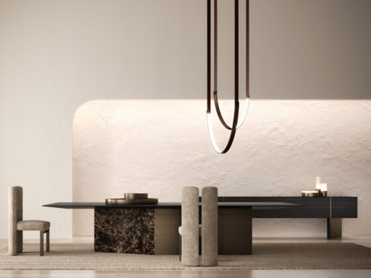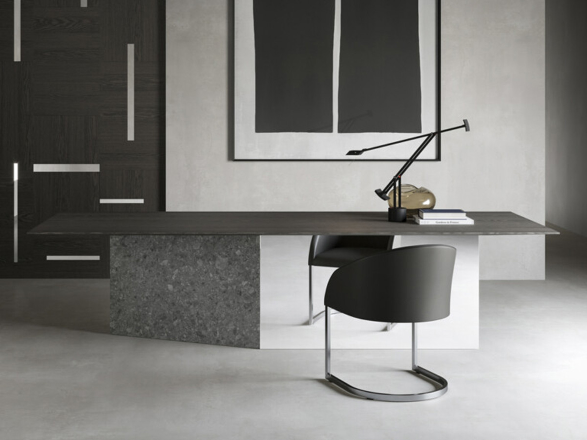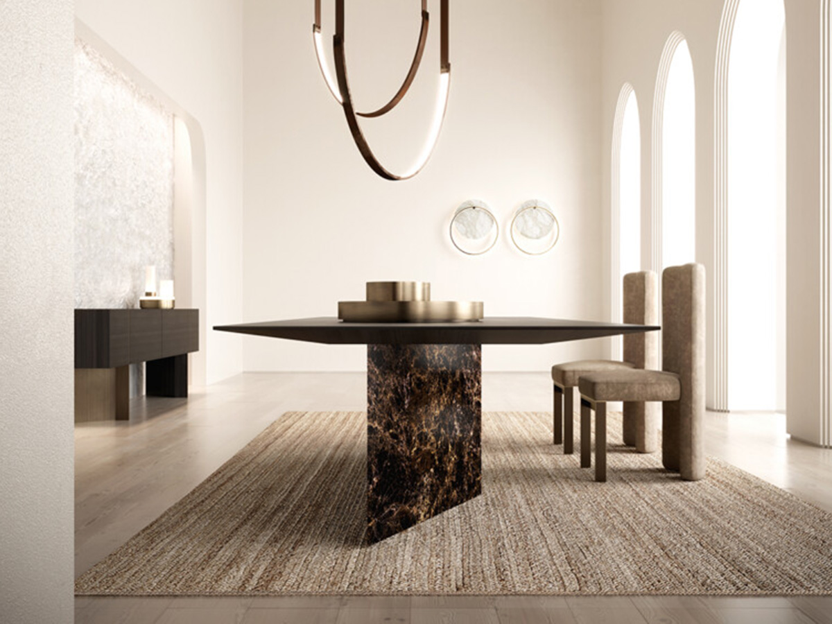 A table with sculptural shapes, capable of expressing the maximum beauty of the materials it is made of thanks to the clean lines and perfect angles. A real tribute to rigour, reason and absolute mastery of the material composition as a whole. The purity of the shape in Assolo guides the balance of the volumes, creating slender proportions obtained by tapering the thickness of the perimeter on the outside. It is made by combining different material proposals and dimensions including marbles and metals in a particularly harmonious whole. Ideal in dining rooms and living rooms, Assolo is able to adapt to numerous contexts, expressing a peculiar and strongly animated taste for each one.