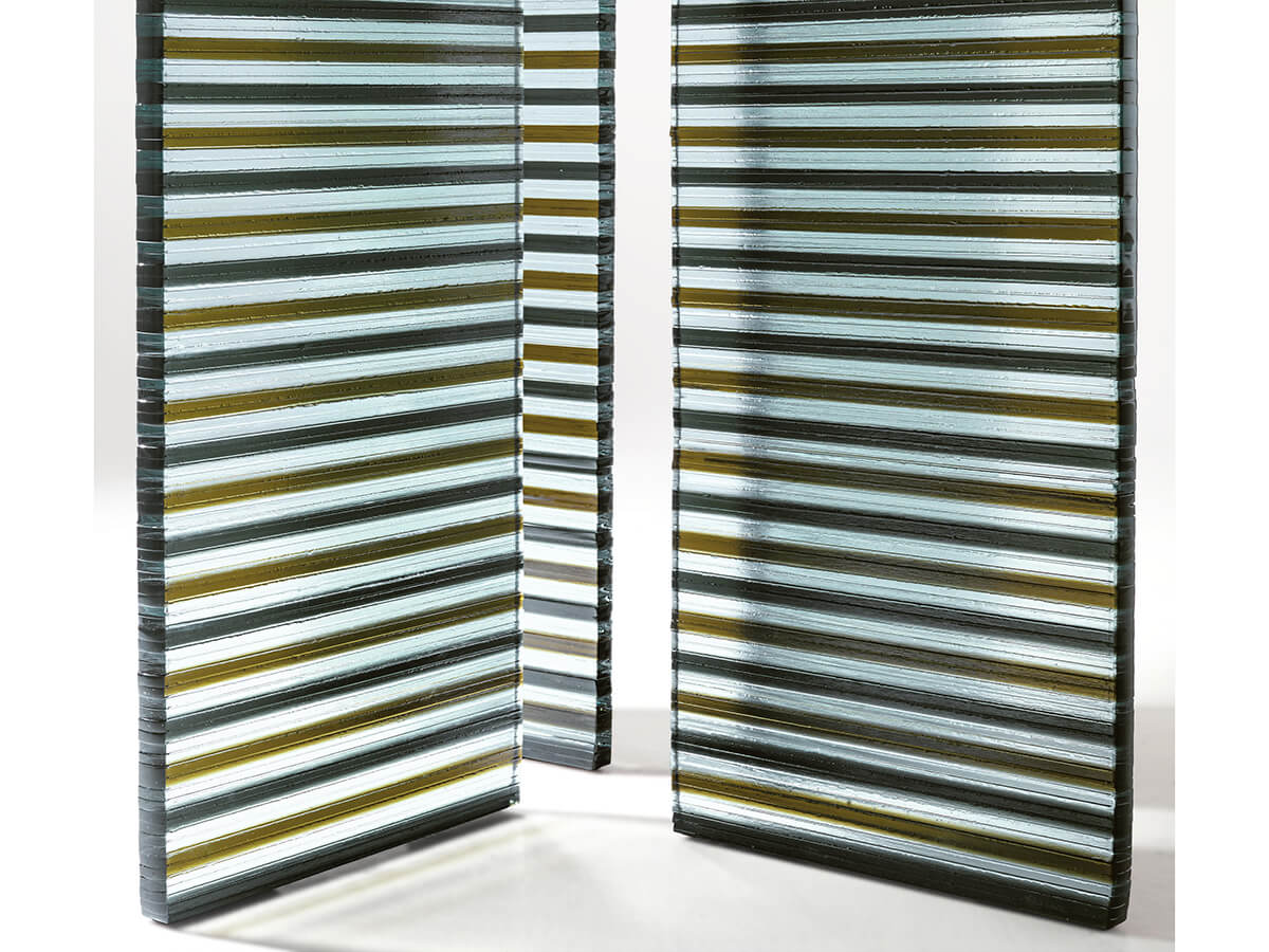 A piece of furniture of great inspiration, capable of exploiting the chiaroscuro of the glass to create a unique, elegant and above all impressive composition. The Big Wave base consists of four or six elements in 30 mm DV Glass with colored strips, placed to create plays of light. The tempered glass top in 15 mm transparent back-painted glass has monochromatic colors, or it can be covered with Ecomalta to better fit into formal contexts. The beauty of Big Wave consists precisely in its double identity, simple and elegant, to be enjoyed in dining rooms, meeting rooms or lounges of a certain style.