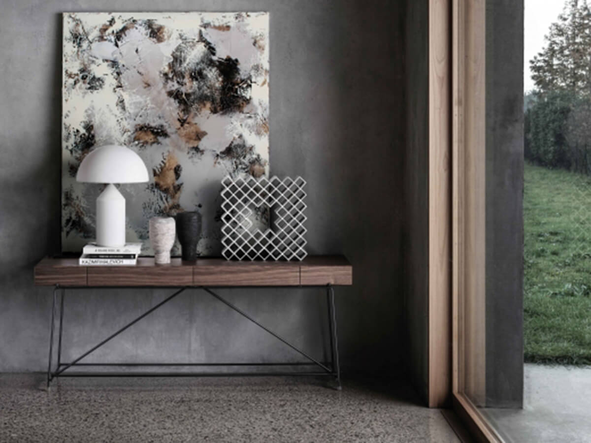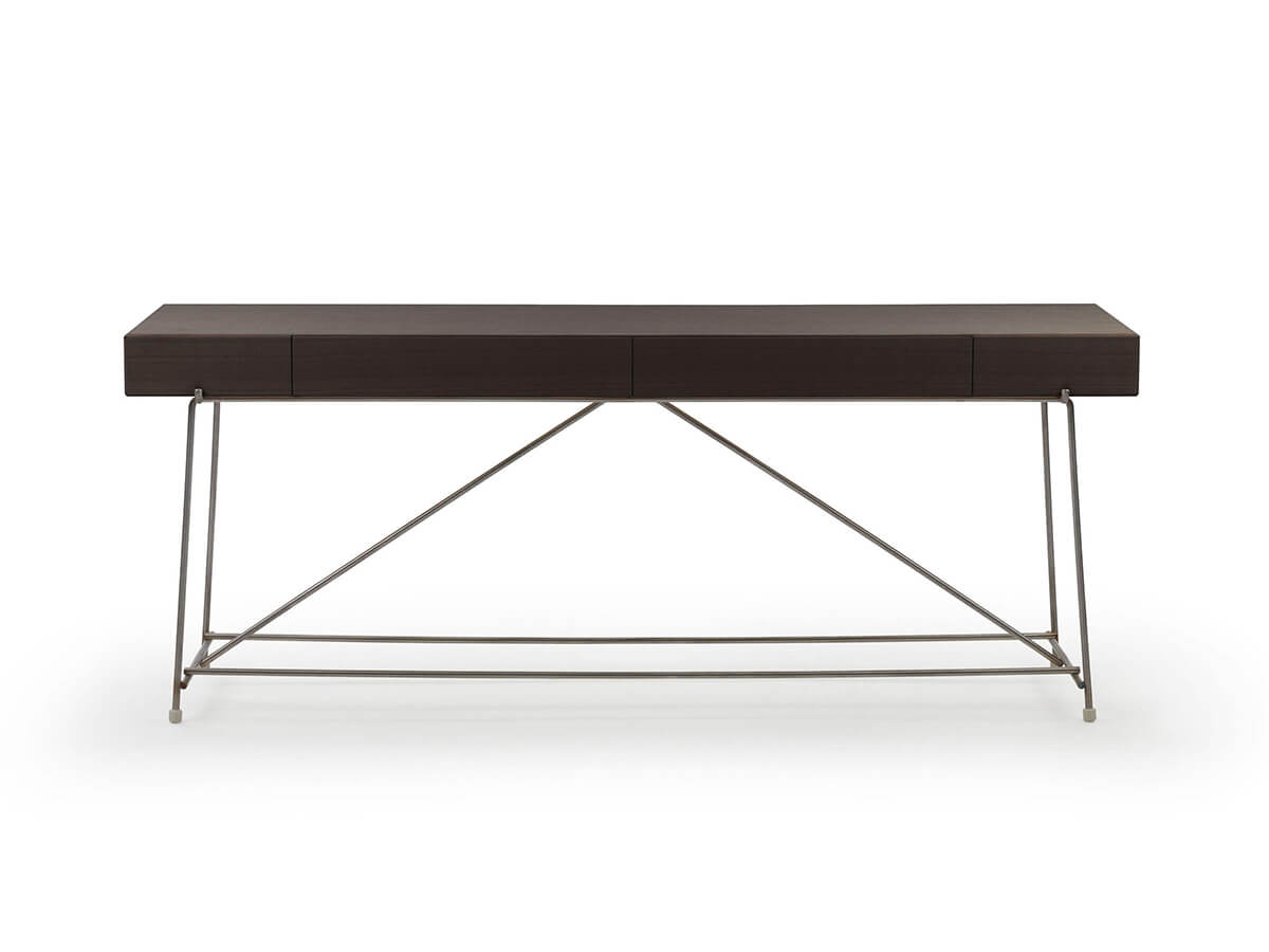 Born from the design of Christophe Pillet, the Any Day console has a light and almost impalpable design, born to be placed in any environment and present in each one a unique, strong and distinguishable personality among many others. Pure lines and an essential design are declined in a rigorous metal structure that supports a walnut veneered element, available in multiple finishes and equipped with practical drawers. The top can be made in wood or in different types of marble, ideal crowns of an elegance present in many other Flexform works. The Any Day concept also extends to the other furnishings of the collection declined in coffee tables, poufs and much more.
