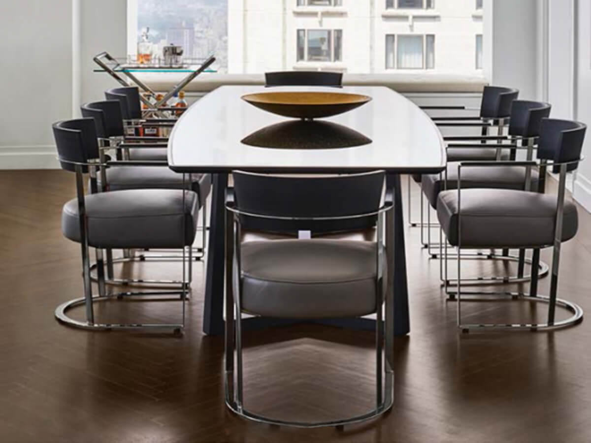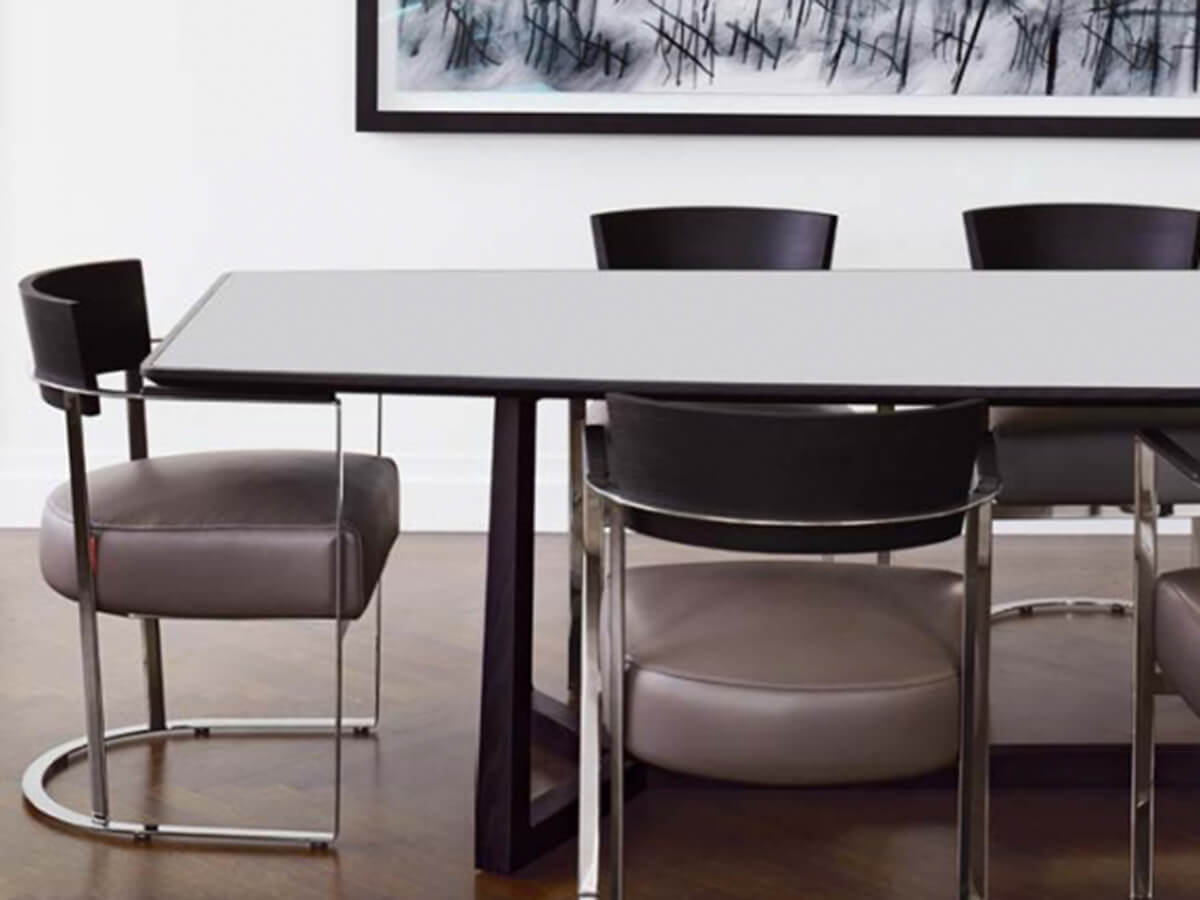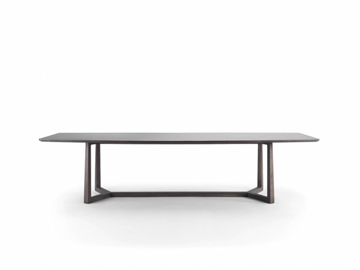 The Gipsy collection includes numerous proposals for home furnishings, including chairs, consoles, coffee tables and tables of great finesse and elegance, capable of being placed in high-class environments. In its table version, Gipsy presents a refined base in solid canaletto walnut and ash, available in a variety of colors. The refined workmanship of the square section legs shows the craftsmanship of Flexform, a heritage of tradition also visible in the workmanship of the top, which is itself available in different versions. Gipsy goes well with heterogeneous furnishings, where however there is a need for a unifying presence on which to focus the gaze.