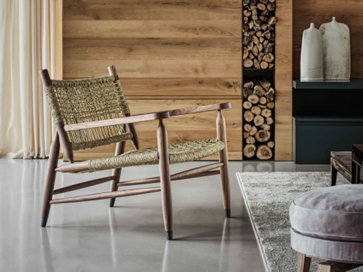 A hymn to tradition, to the timeless taste of furnishings that have been able to make history thanks to their simplicity and traditional quality. The apparent simplicity of Tessa conceals an extreme design complexity, the result of the happy union of manual work, craftsmanship and aesthetic foresight. The structure is completely made of solid ash or turned canaletto walnut. The joints are made following the tradition to give each element a traditional and material warmth. The intertwining of the seat and back is done by hand according to the dictates of the past, sweetened by a personal touch of the company. Optional are the cushions, secured by means of essential ribbons to make the seat more welcoming.* Technical features: weaving in river straw