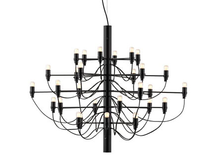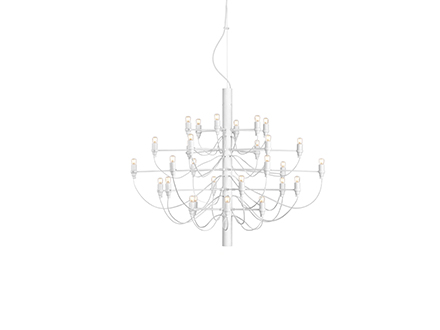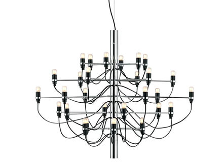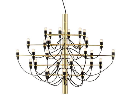 A piece of furniture from the past revised and re-edited to fit into modern and highly suggestive settings. 2097 stems from the concept of an old-fashioned chandelier, where many arms converge towards the centre, each hosting a single light source. Flos takes up the idea and transforms it into something new and more current, capable of escaping the more traditional canons so as to be placed in any room of the house. Also excellent in public areas, 2097 does not fear the passage of time, always giving a hint of known. The central structure and the arms are in brass, both chromed, black or gold according to taste.
