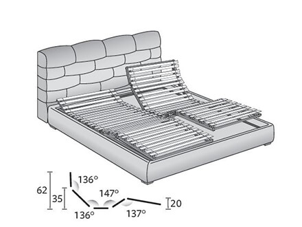 A piece of furniture that enriches the bedroom thanks to a design of extreme visual impact. This spectacular element stands out for the richness of the fabrics used specifically to enhance the geometric shape of the headboard comparable to a modern boiserie. Among the many options, this peculiar element is available in two versions: aligned to the base or extended to the sides of the bed. The base can be Leonardo springs, container, fixed or with electric movement according to taste or need. Majal is ideal for those who want to enrich the spaces of their home with a distinctive object of extreme compositional taste.