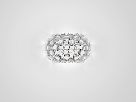 A lamp capable of suggesting different dimensions and identities, reworked in order to create a new and surprisingly whole. Caboche was born from the observation of a pearl bracelet. An idea that becomes a precious and modular lamp, made to adapt to the most diverse needs, according to taste. When it turns on, the LED light inside penetrates the spaces of the transparent spheres, creating imaginative plays of light that change orientation and propagation depending on the point of view. The material used, polymethyl methacrylate, is perfect for this function. Caboche is available in different sizes, small and large, as well as numerous colors, to better lend itself to the most heterogeneous uses.