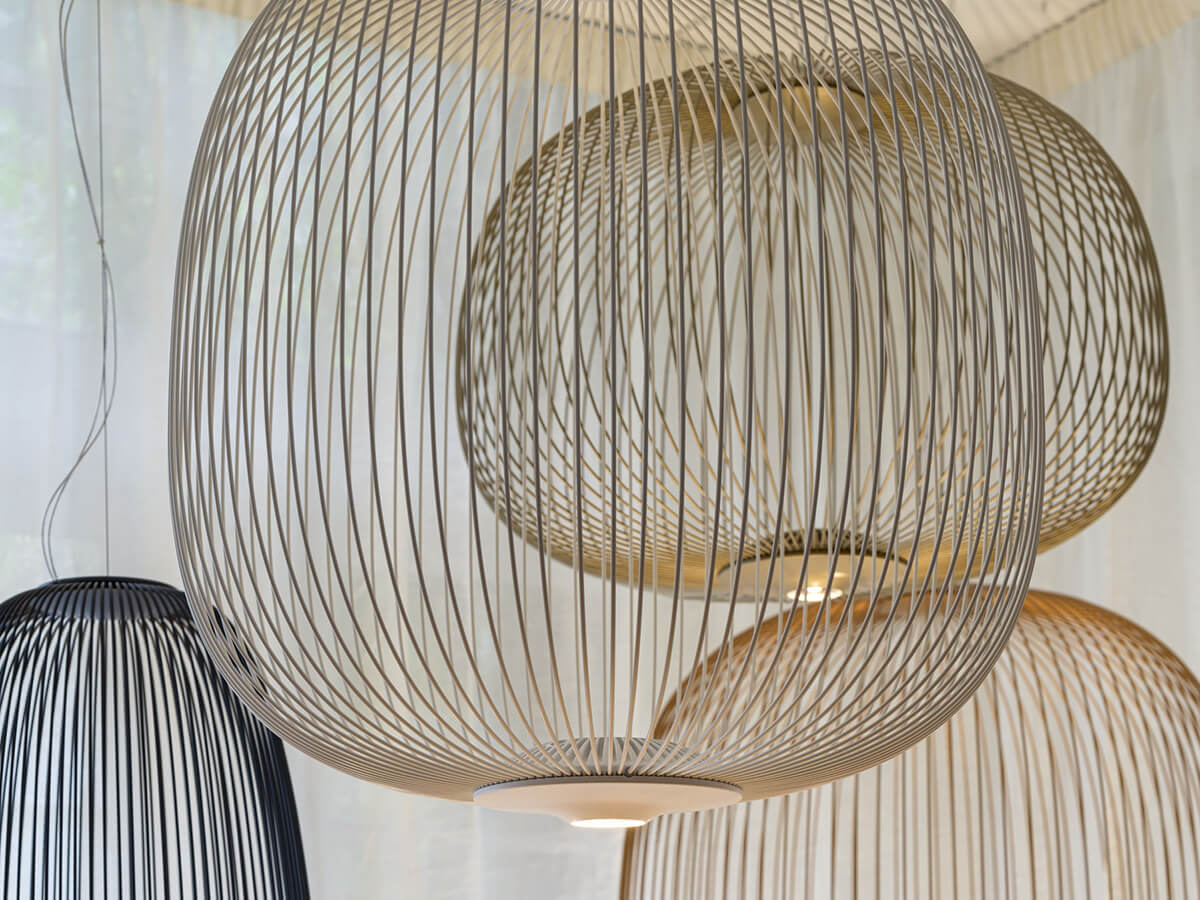 A typically oriental feeling seems to inspire the Spokes lamps by Foscarini, an emblem of elegance but also of a design that is not afraid to dare. Spokes seems to arise from the idea of ancient oriental lamps or the more domestic shaped aviaries in order to create a real cage from which the light spreads softly, with unique and sensitive shades. The realization comes from the observation of the spokes of a bicycle wheel, from which the project also takes its name which in English means, indeed, spokes. The result is a lamp with a soft and light shape, perfect for filling space without actually weighing it down. However, the structure is equally solid, ideal for different environments and uses.