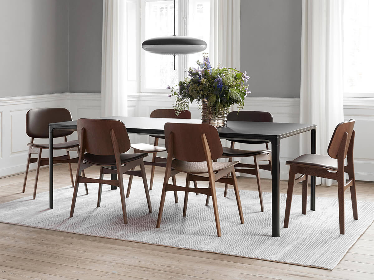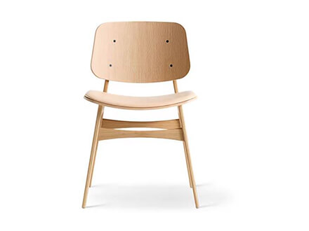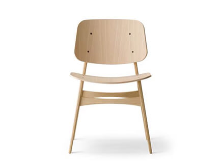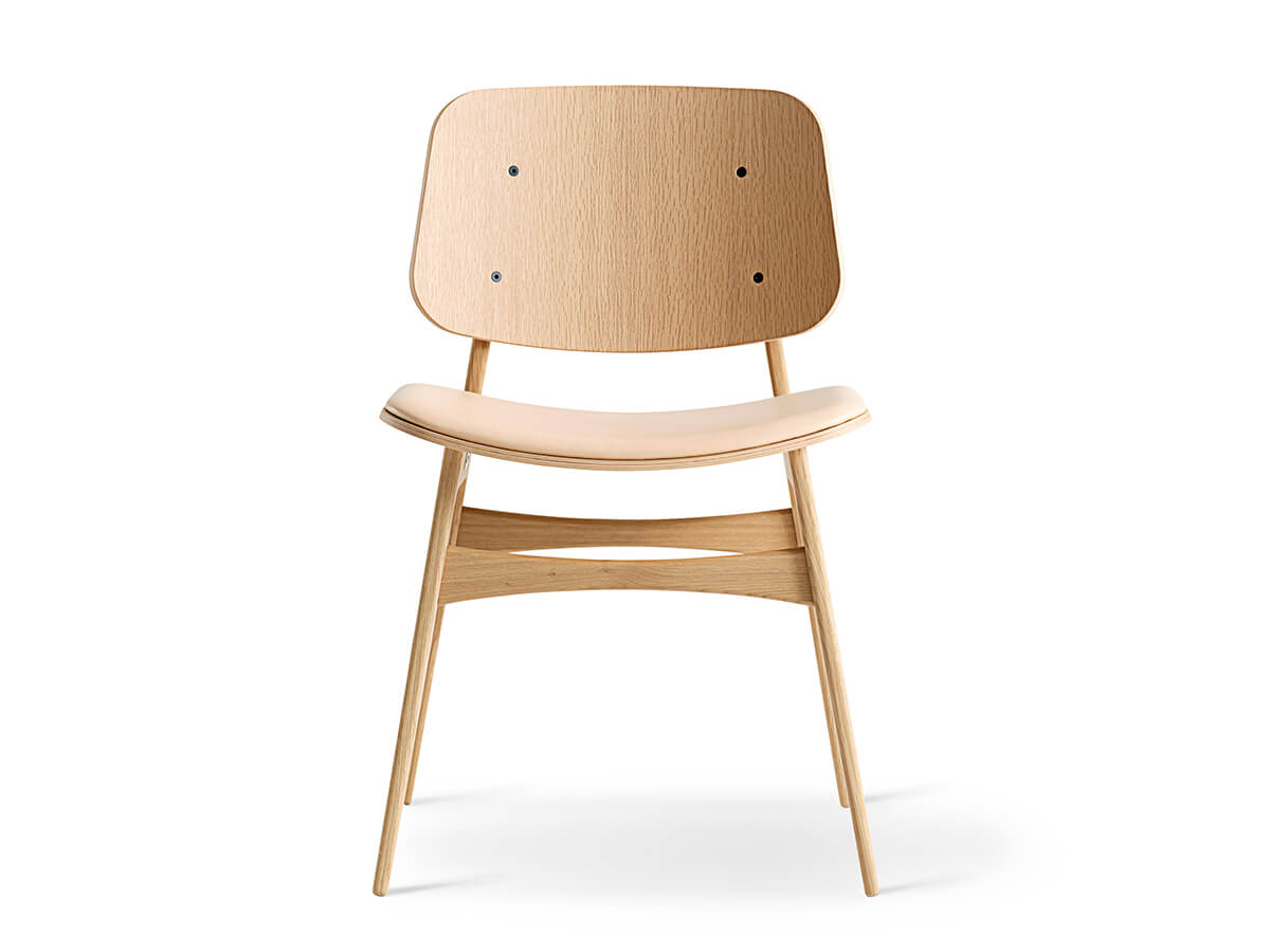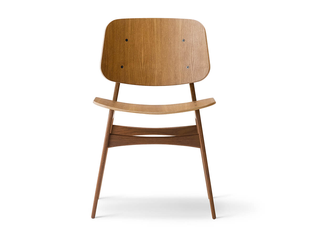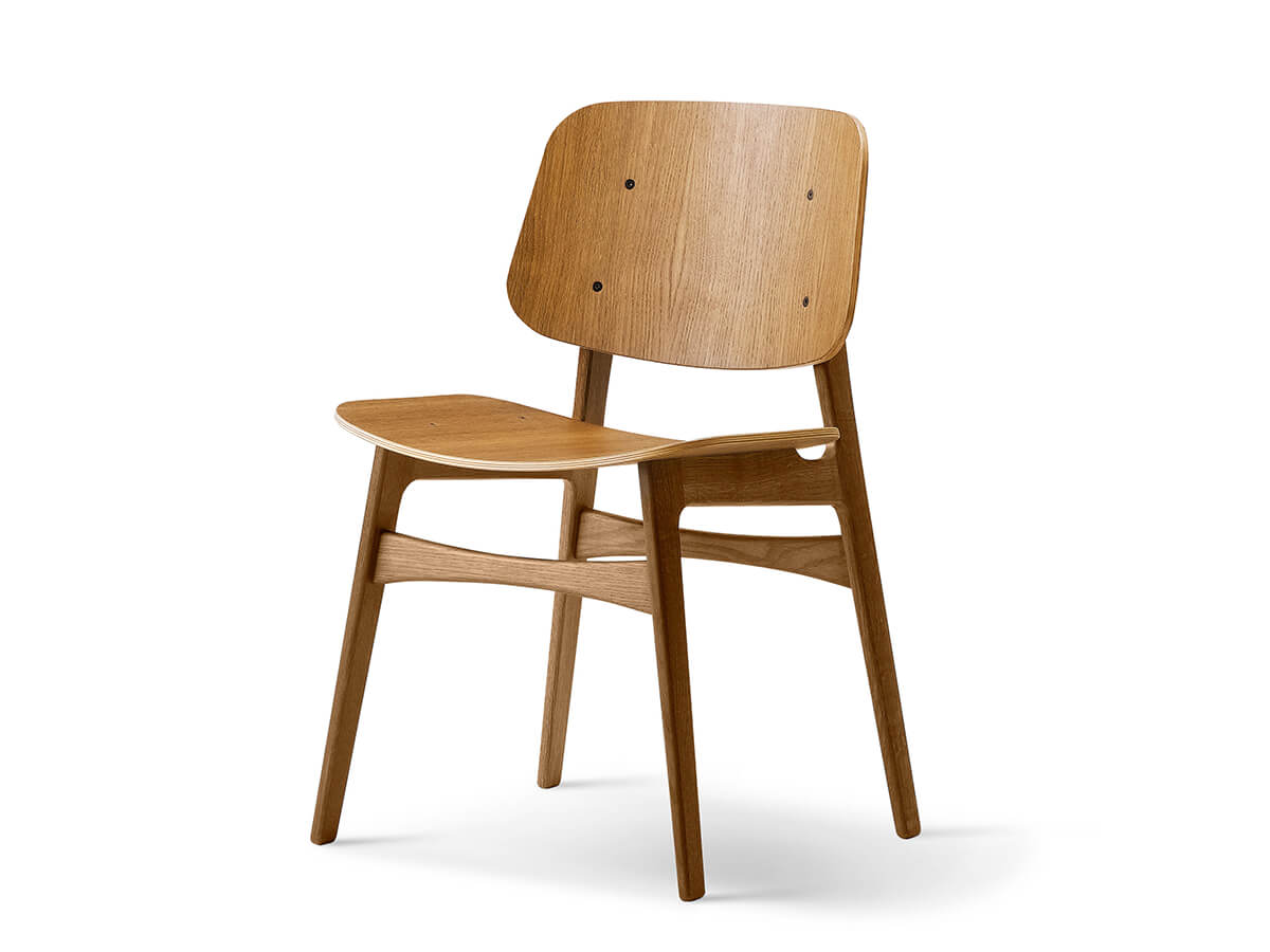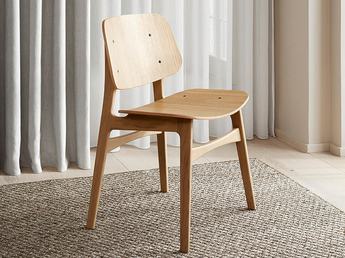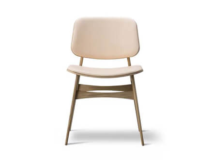 Although it was originally designed by Børge Mogensen in the distant 1950s, the Søborg chair by Fredericia has an aesthetic that still appears fresh and contemporary today. The result of Mogensen's experiments with plywood, Søborg is composed of two distinct sheets with gently rounded shapes that make up a welcoming seat and a comfortable backrest, which can also be equipped with an optional leather or fabric padding. The structure is available in two different variants, one more natural and typically Scandinavian, in solid wood, the other more contemporary, in metal. The metallic variant can also be completed with small armrests hooked directly to the backrest.