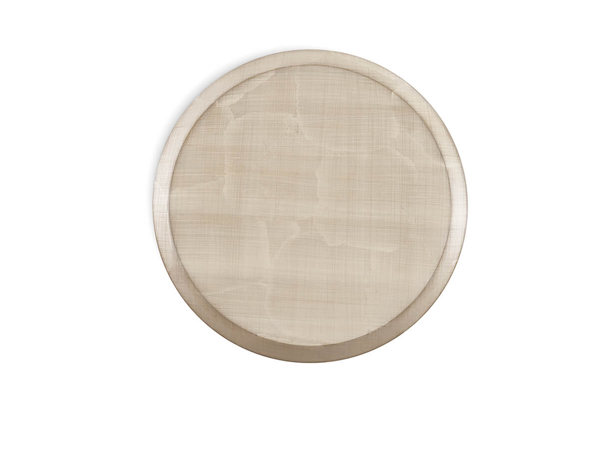 Gong is a massive and spectacular round coffee table designed by the Gallotti & Radice team of interior designers. It is a work of high craftsmanship that reveals all its value in the mastery of manual processing, which find its maximum expression in the processing of the beveled wood that covers the entire surface. Evocative names such as "Autumn Weave", "Carbon Black" or "Winter Weave" define the different finishing treatments, with valuable material effects. Even the thin base receives special attention, becoming a decorative element. The coffee table is available in three different sizes that allow it to perform different functions.* Technical features: Autumn Weave version on a gold leaf base, Winter Weave on a silver leaf base and Carbon Black version on a copper leaf base