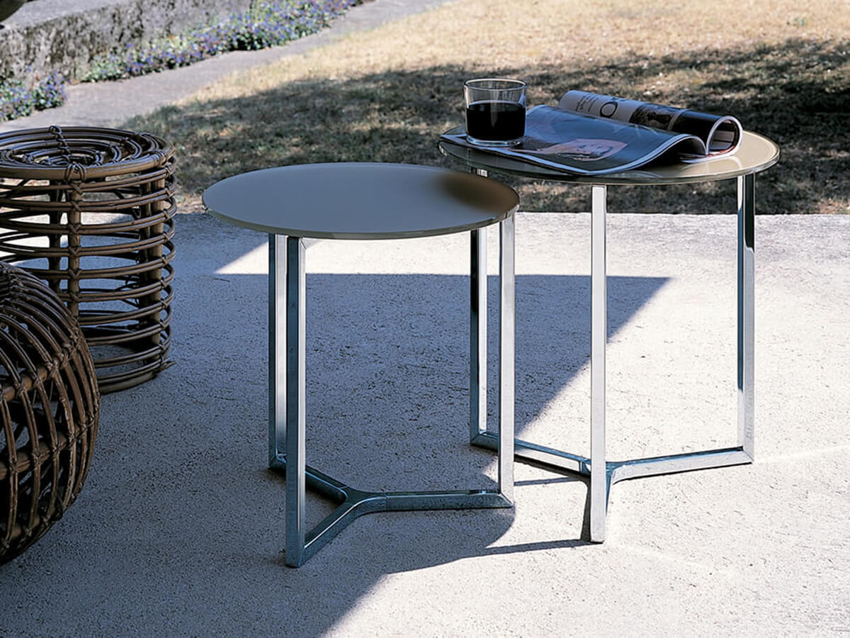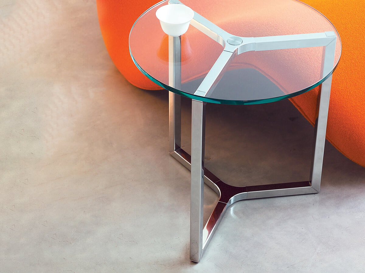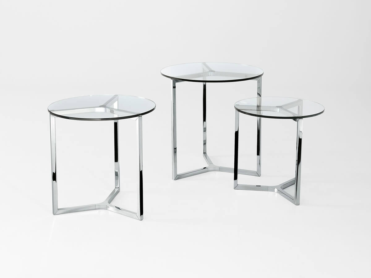 Raj is a family of coffee tables with a glass top designed by the Italian-Brazilian designer Ricardo Bello Dias for Gallotti & Radice. They are all characterized by the spectacular metal base, available in polished stainless steel or burnished metal, whose shapes are revealed and enhanced by the transparency of the glass top (which can be transparent, extra-light or in the exclusive "Grigio Italia" finish) . To differentiate the various versions are shapes and sizes: Raj 1 is a large round coffee table while Raj 2 has thinner profiles for the base and is available in various sizes. Raj 3 is instead characterized by the drop top, while Ray 6 has elongated dimensions and a more composite base.