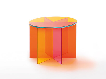 A piece of furniture with an unconventional charm, capable of attracting attention thanks to the power of its design, the result of an in-depth study by Glas Italia and Johanna Grawunder. XXX is a collection of coffee tables that stand out among the numerous models of the company for the variety and modernity of the design concept that led to its conception. It is made of transparent pink, orange and yellow crystal. The base is obtained by gluing six glass plates, laminating 6+6 mm with special bevels. The top, also in glass, rests on the base and is available in one of the three colors shown above.