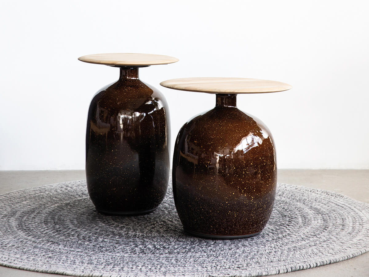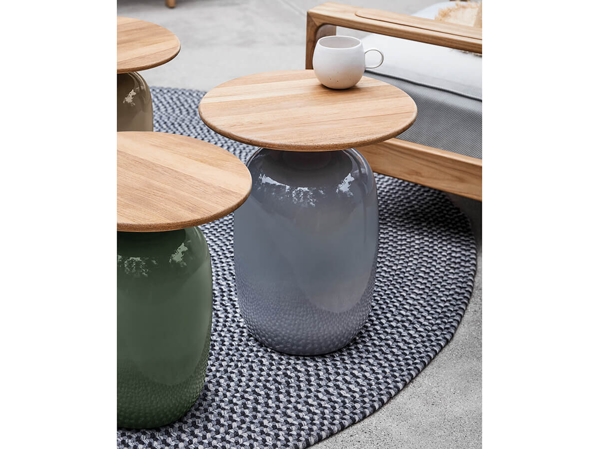 Peculiar and absolutely original, the Blow coffee table stands out for its glazed ceramic base created along the lines of an ancient jar or a large precious vase. The teak wood top creates a particular contrast in an evident dialogue wanted by Gloster in order to bring out both. Contemporary and modern, Blow adapts perfectly to different types of environments, from indoors to outdoors, also passing through less defined situations where there is a need for a support or furniture that is not too bulky, but certainly evident. The beauty of the finishes used and the materials used make this object unique in its kind.