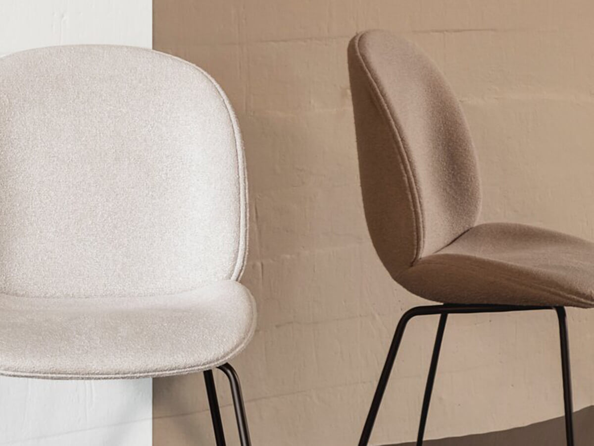 Beetle was born from the artistic Gamfratesi duo, a chair with a fluid and captivating design, capable of attracting the sympathies of everyone for the absolute purity of forms. Beetle has a fully padded shell covered in fabric or leather and a base made up of metal legs painted in different finishes. The edging is available in different materials, to better match the rich range of colors available to the customer. The chair is inspired by the world of beetles, recalling in the shape the opening of the wings or the way in which these insects open their wings. Chair and back are separated, joined by a steel connection milled in the two shells.
