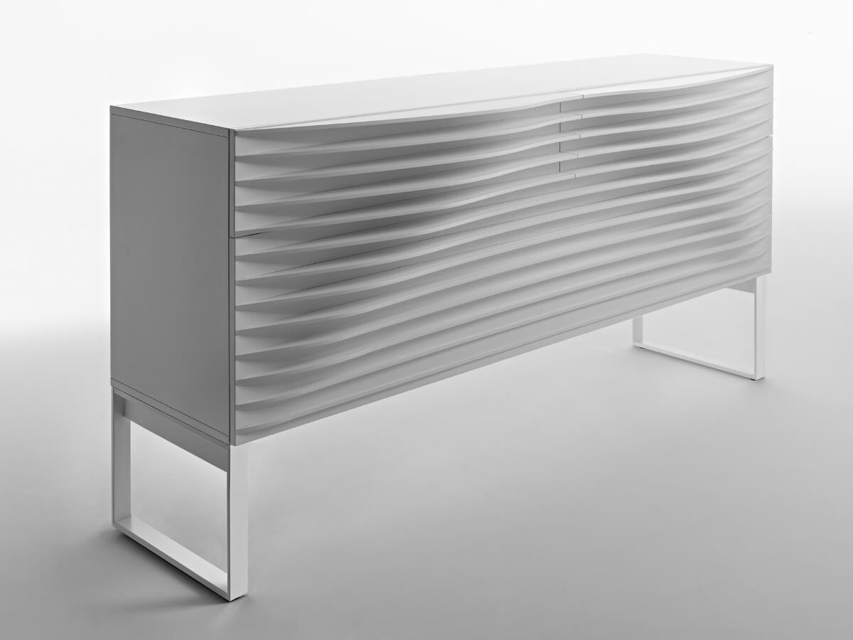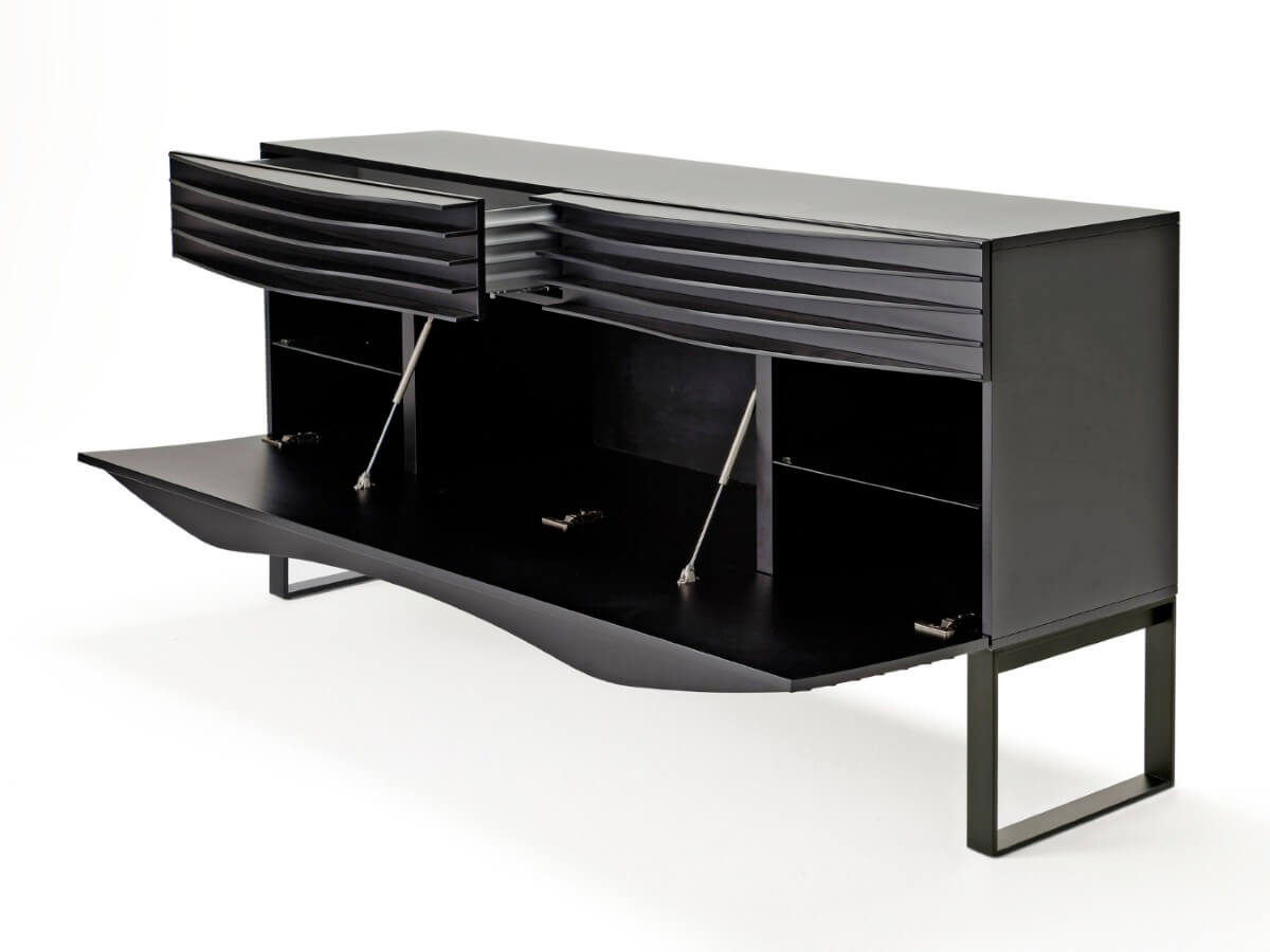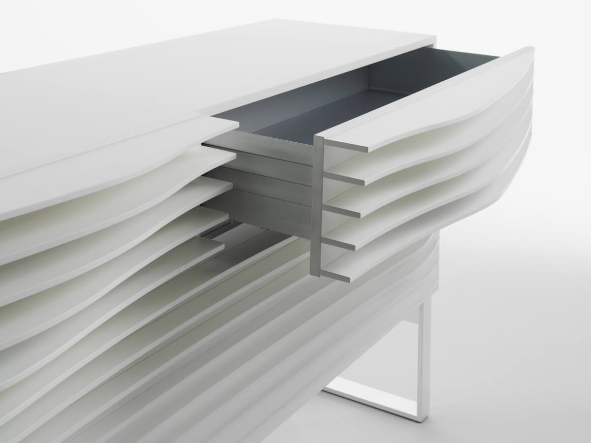 Soft and wavy, the surface of Tide Buffet invites the eye to relax and fascinate, offering a side that seems to recall the motion of the waves or the play of the wind on the surfaces. From designer Karim Rashid, Tide takes the strong and spontaneous style, worked on movement and dynamism. The horizontal development of the frontal parts gives the whole a peculiar unity, where it is difficult to define the beginning and end of drawers and spaces in which to store the most diverse objects of the house. In addition to being beautiful, Buffet is large and functional thanks to the large drawers and the flap door for the living area. Available in different colors and finishes, Buffet reflects a refined and elegant way of furnishing, always capable of capturing contemporary ideas.