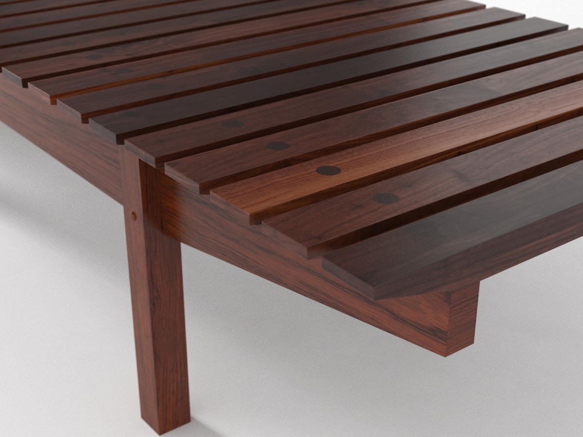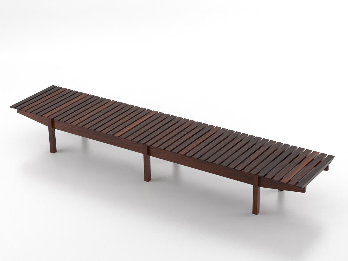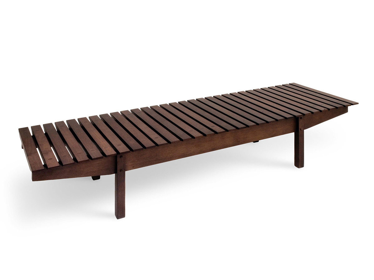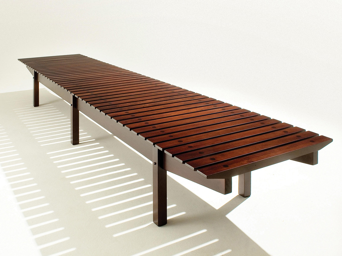 Usable both as a bench and as a coffee table, the Mucki model by LinBrasil was designed to enhance the chromatic effects of wood, the material from which it is entirely made. It is a historic piece of Brazilian design: its original project is in fact dated 1958 and is designed by Sergio Rodrigues, one of the designers who contributed to bringing Brazil's design culture into modernity. With a solid sculptural charm, its most characterizing element is the surface created by the juxtaposition of many small wooden strips which give it a rustic and genuine look. A similar treatment of wood, played on the contrast between full and empty spaces, is a stylistic connotation that will often return in the history of Brazilian design, being taken up in different forms even by appreciated starchitects such as Marcio Kogan.