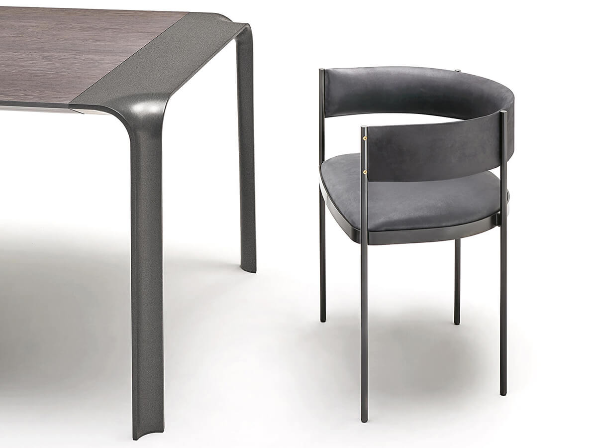 A perfect blend of structure and shapes, structural mathematics and visual elegance. The Era chair has a typical silhouette of the family to which it belongs, the Era series, but it changes the materials: the backrest band is in padded calendered sheet metal and covered with a tubular fabric. The painted steel structure is strong and rigorous. The seat shows different variations to express different needs for lightness and stability. A well-stocked range of colors and textures enriches the series, allowing you to choose the best according to the place where it will be placed or personal taste. Technical features: gunmetal gray metal structure