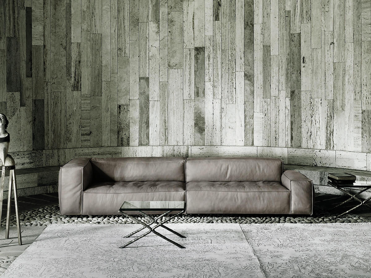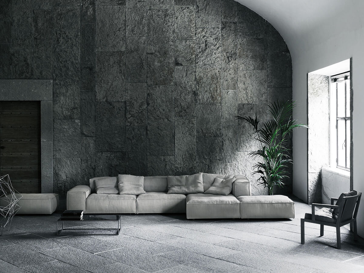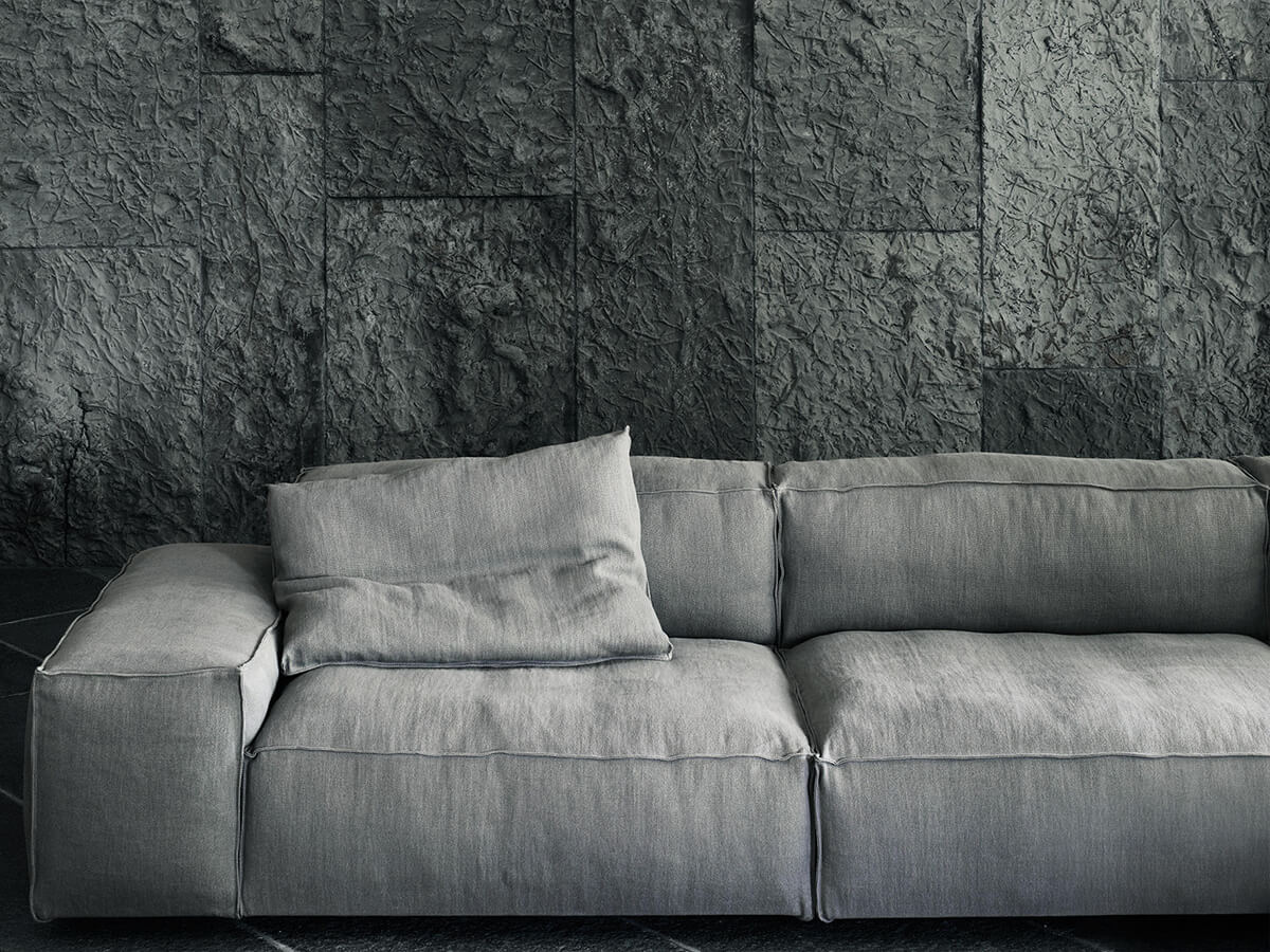 A piece of furniture with simple shapes that matches well with contemporary taste. Neowall is a sofa made up of modular elements of different sizes, joined in a honeycomb poplar and fir wood structure with interwoven rubber elastic band springs. The padding is in differentiated density polyurethane foam, covered with a mattress in washed and sterilized goose down. The variety of compositions that can be created with Neowall are second only to the wide range of choices that Living Divani makes available to create a living room with a unique and masterful touch, entirely dedicated to convenience and comfort. Beautiful and elegant, Neowall is what you need to feel comfortable.