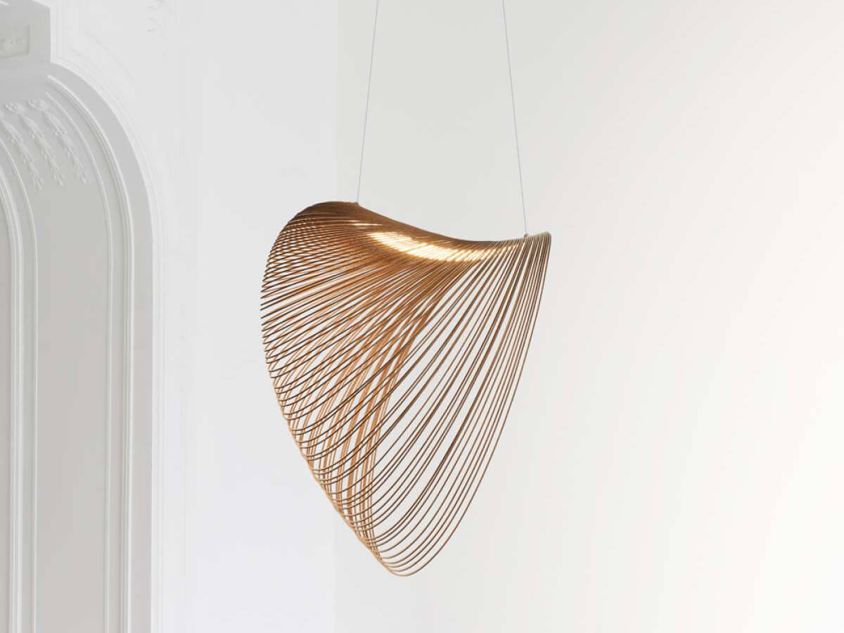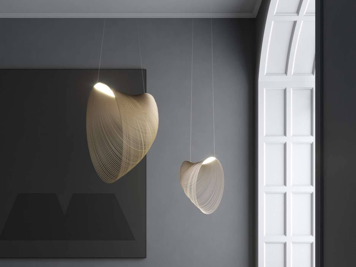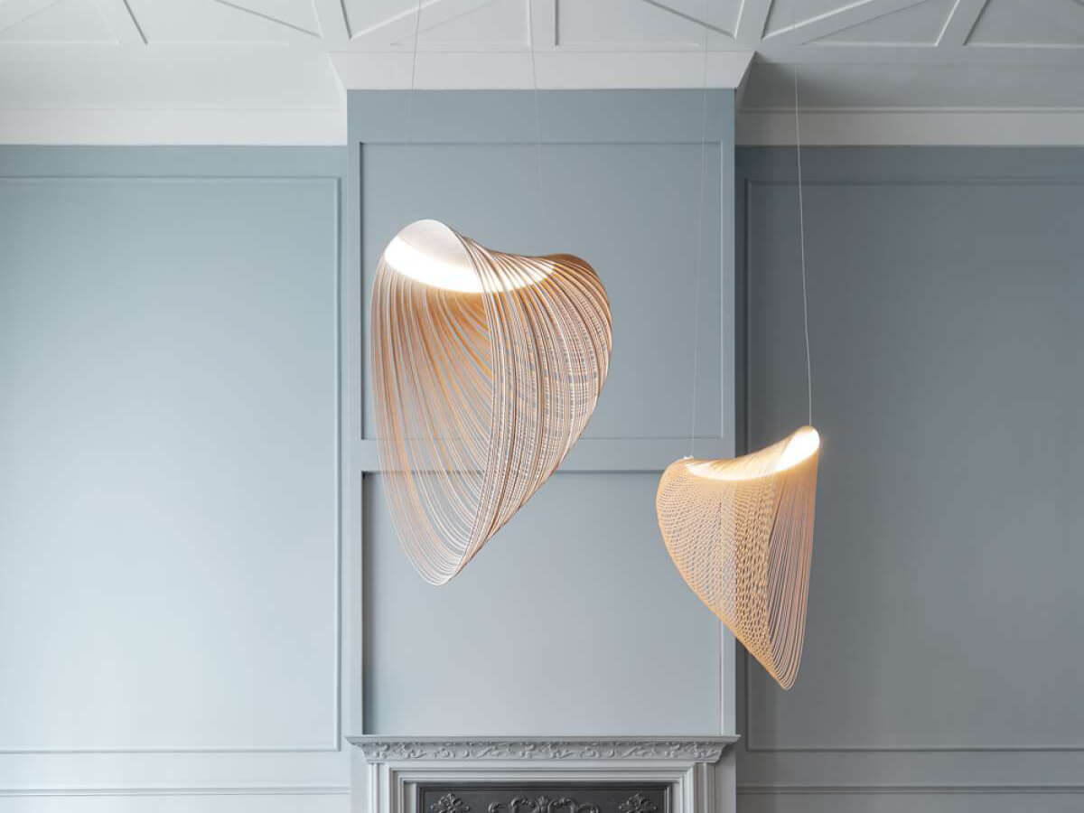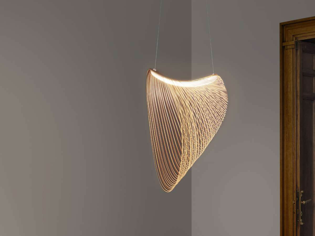 Technological innovation and timeless elegance have given life to this unique suspension lamp, with a perfectly recognizable style. Luceplan and Zsuzsanna Horvath have been able to combine a light body, obtained from an extremely thin and flexible multilayer of wood, with an extremely evocative physiognomy, aimed at stimulating the imagination and creating emotion. Slight unevenness of color and grain present in the wood give life to Illan's material beauty, ideal for creating a gravity effect and taking on the characteristic floating shape. The aesthetics of this bright furniture is combined with LED technology to create a very pleasant and relaxing diffused lighting.