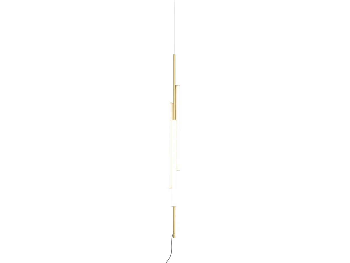 A hymn to essence and conceptual design, Ambrosia is a lamp that echoes the aesthetic of the Linestra lamp, transformed and updated according to the most modern standards. The original model featured a single line of light, to which the addition of modular components made it possible to construct complex lighting elements in space. The spirit of this lamp is reimagined through the use of tubular lighting elements combined with geometric supports to create simple yet highly evocative compositions. The light diffusion is soft and unobtrusive, making it ideal for a variety of domestic and non-domestic settings.