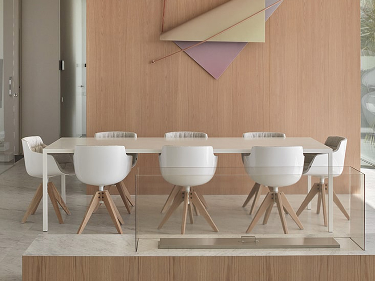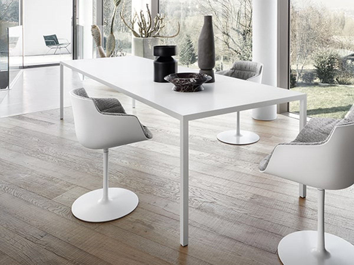 A table with a simple and concise design, which does not fear essentiality to express what is most expected of an object that fits well within the living space or the area dedicated to preparing food or the most intimate conviviality between friends and family. Tense is an object designed by MDF Italia in collaboration with Piergiorgio and Michele Cazzaniga, a duo to whom we owe the formulation of such a minimal concept that can adapt to the most diverse environments, both residential and contract. The identical finishes for the top and the legs create a feeling of compactness and contemporaneity. Tense is also extendable, with sizes that reach even 4 meters and numerous colors available in the catalogue.
