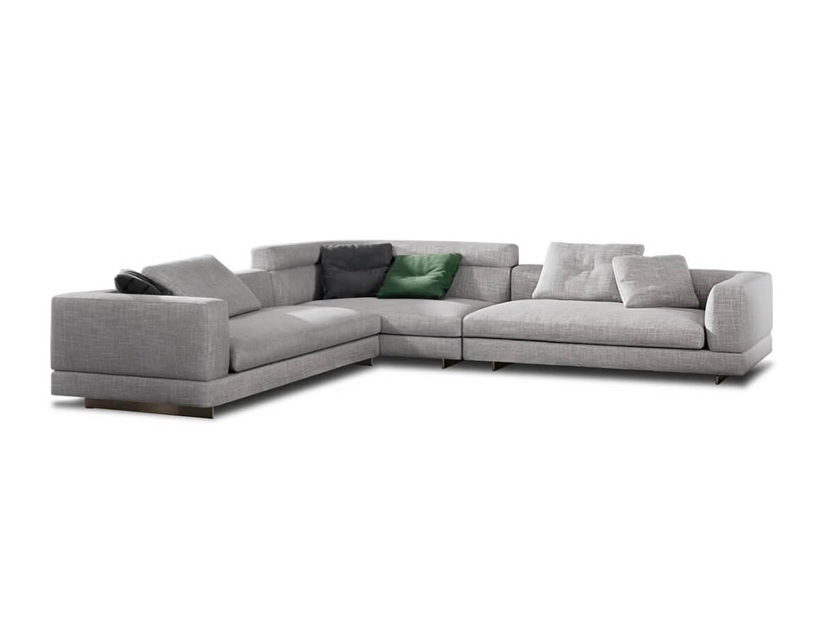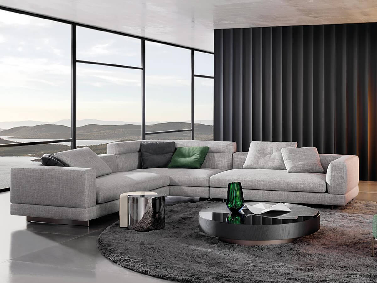 Alexander is an elegant and highly suggestive seating system, which can be combined according to different patterns and morphologies according to taste, to better adapt to any room in the modern home. Peculiar are the different modules from which "L" or linear configurations are obtained which can then evolve into sinuous profiles thanks to the Alexander "Drop" curved elements as chaise-longue or terminal elements with rounded corners. Among the many variants, Alexander offers armrests of different heights, which can be combined so as to create greater dynamism to the structure. Available in both fabric and leather, this sofa features extremely fine tailoring details, capable of enriching any composition with unexpected preciousness.