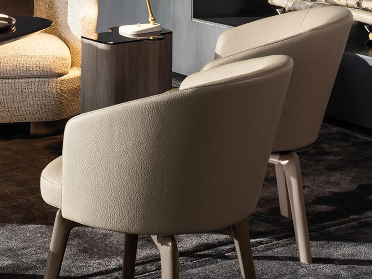 The Amélie armchair represents one of the many creations by Minotti where elegance, craftsmanship and avant-garde design are combined with a style capable of interpreting the taste of our time. Rodolfo Dordoni designs the padded structure made with cold-foamed shell and covered with soft padding. The base is available in different finishes aimed at improving its adaptability and versatility in the different rooms of the house. A wide range of choice for seat coverings makes Amélie a perfect element for those who want to furnish with taste and personality. Among the available variants we mention Amélie Dining and Amélie Lounge, examples of adaptability to the environments of everyday life.