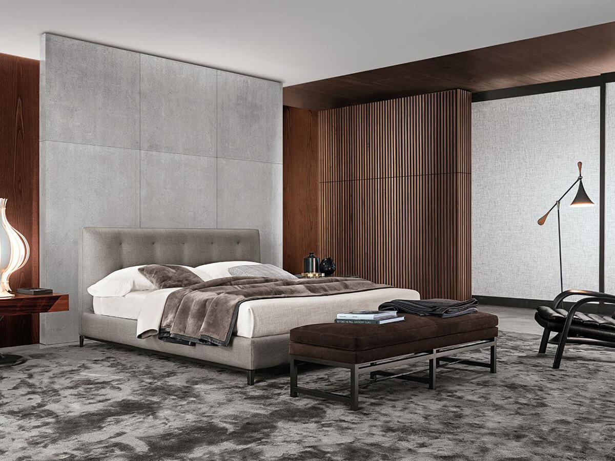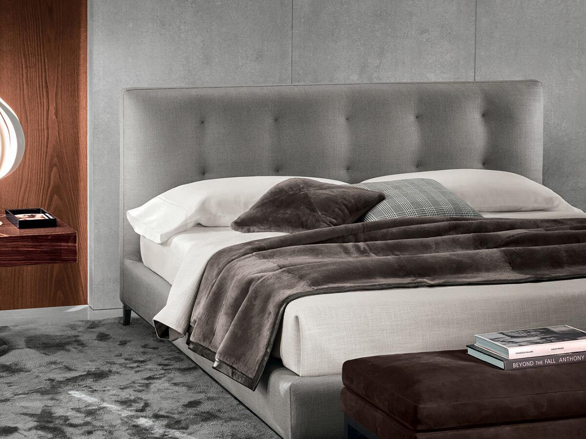 The Andersen bed represents one of the many distinctive elements of the Minotti collections for the sleeping area, standing out for the generosity of shapes combined with fine sartorial accuracy. The aesthetic value of this bed fits into the wider collection of Andersen chairs characterized by balanced volumes and the base raised off the ground thanks to the refined feet. The Andersen headboard stands out for its minimal and linear design to which is added generous padding aimed at making contact particularly comfortable and welcoming. The leather or fabric upholstery has been carefully selected to satisfy different tastes and needs depending on the style of furniture adopted. An element therefore capable of conforming in multiple ways to meet heterogeneous needs. Among the variants we mention the Andersen Quilt bed with quilted motif, more traditional and decorative.