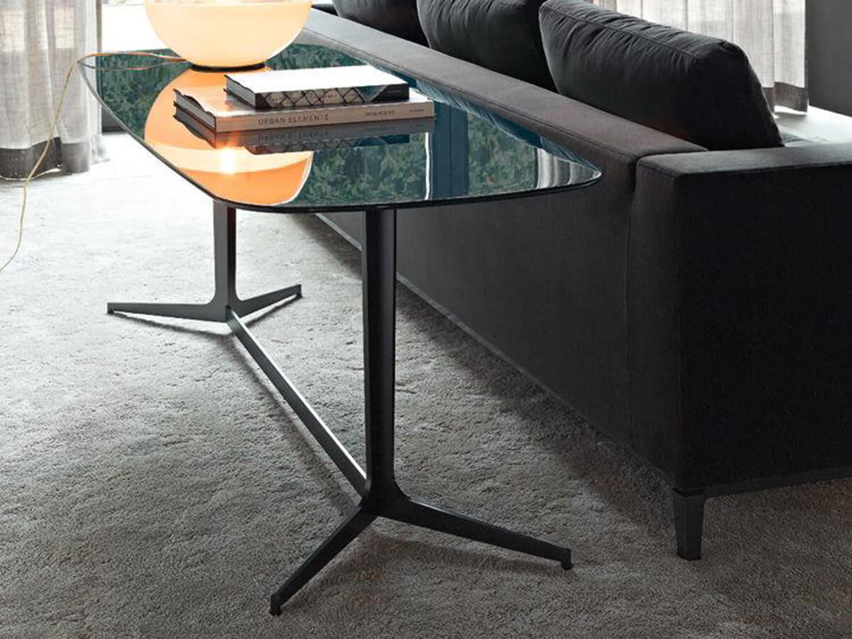 The minimal style dominates this elegant console with a simple and contemporary taste, capable with its few lines to dominate the scene of any room in the house. The sign of Clyfford fits perfectly with the style of the Minotti collections, giving life to valuable compositions of upholstered furniture, tables and other accessories for the living and dining area. Nevertheless, the sleeping area can accommodate this piece of furniture whose laser-cut metal structure houses a more than varied assortment of tops available in different finishes and essences. The thin line of the top is shaped at the edges to be gentler and more luxurious, a feature that unites many of the Minotti products.