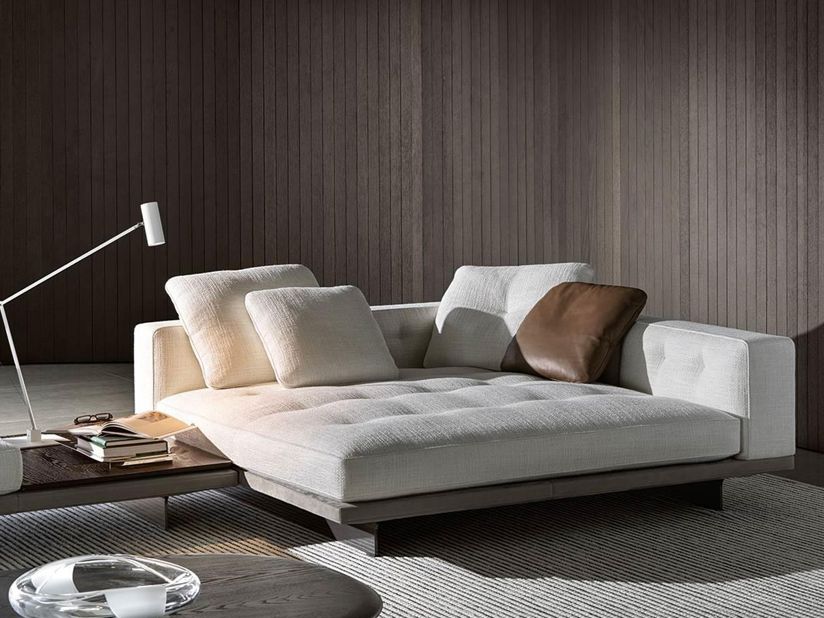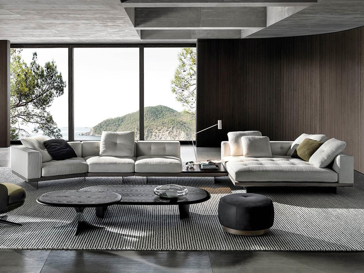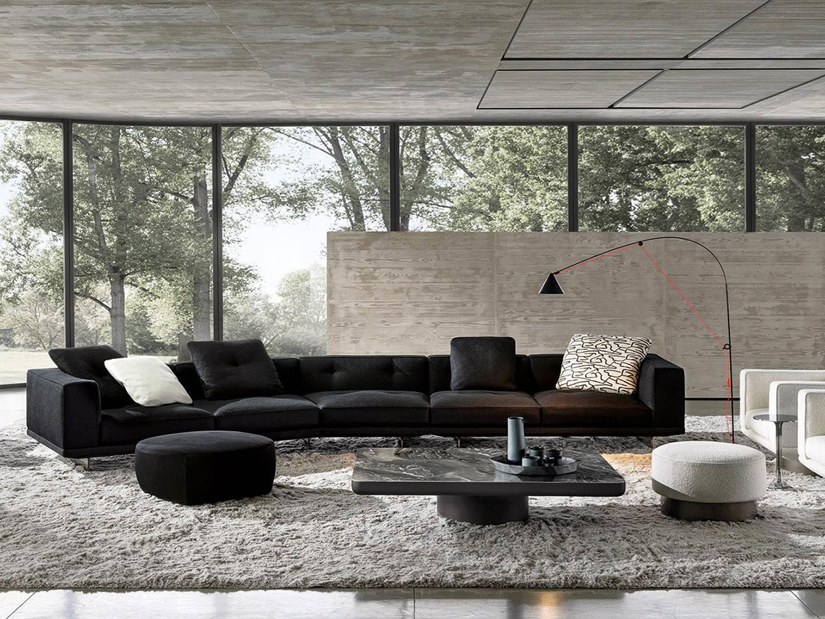 A furnishing element of great elegance, which as always characterizes the style and taste of the Minotti company. The Dylan line arises from a continuity of shapes that are expressed in three precious variations that correspond to different ways of experiencing the domestic space. In its version with suspended base, Dylan appears particularly airy and modern, with extruded aluminum feet that lighten its shape. The Dylan Small version instead focuses on creating more compact and aesthetically designed depths to bring Minotti elegance into smaller domestic spaces. Dylan Low, on the other hand, represents a more classic variant, raised from the ground by a few centimeters to create a more formal aesthetic sensation.