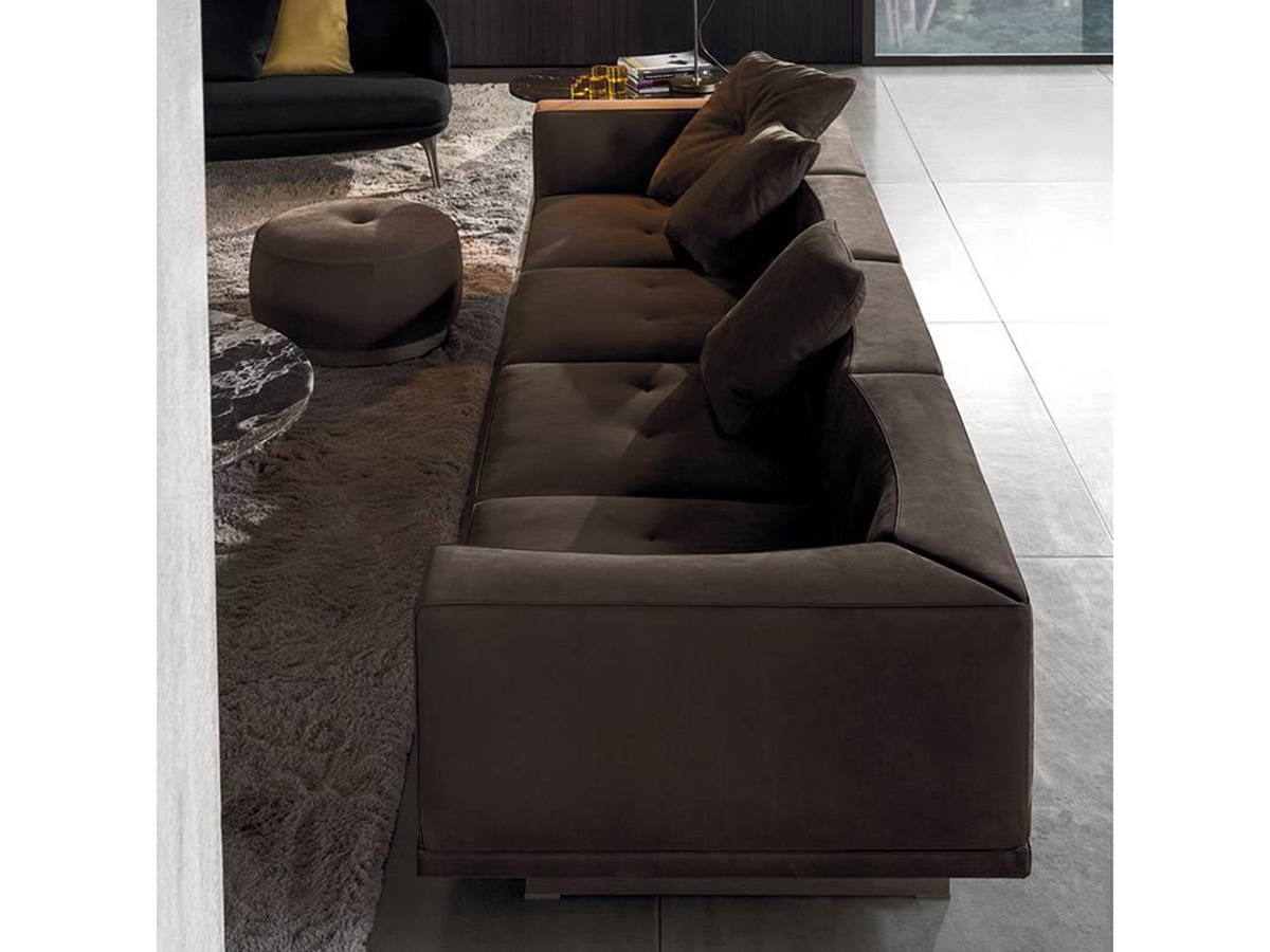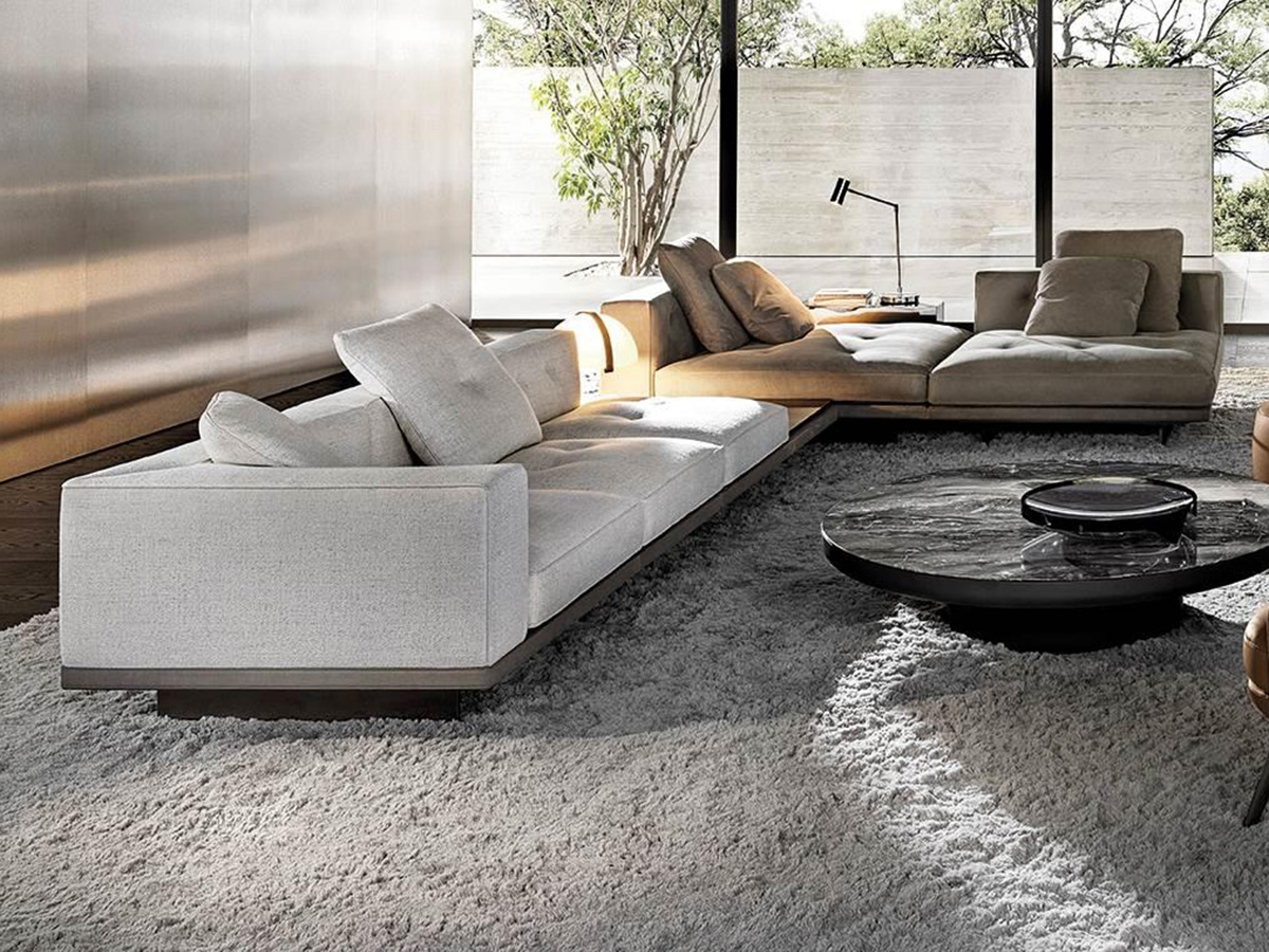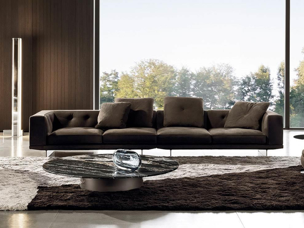 A furnishing element of great elegance, which as always characterizes the style and taste of the Minotti company. The Dylan line arises from a continuity of shapes that are expressed in three precious variations that correspond to different ways of experiencing the domestic space. In its version with suspended base, Dylan appears particularly airy and modern, with extruded aluminum feet that lighten its shape. The Dylan Small version instead focuses on creating more compact and aesthetically designed depths to bring Minotti elegance into smaller domestic spaces. Dylan Low, on the other hand, represents a more classic variant, raised from the ground by a few centimeters to create a more formal aesthetic sensation.