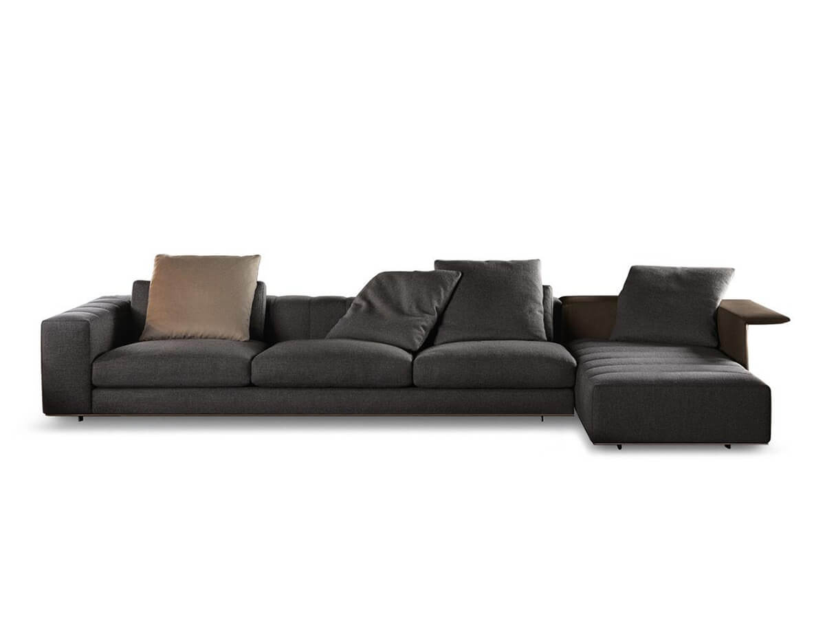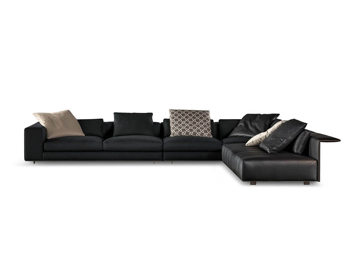 The Freeman sofa by Minotti houses two different personalities. The first, Freeman "Duvet", characterized by soft and enveloping lines with extra-soft cushions ideal for welcoming the body and offering a total relaxation experience. The second, Freeman “Tailor”, more solid and defined, with monobloc seats designed by stitching more suited to everyday life and a more formal way of living the sofa. From the union of these two trends Freeman is born, a chair capable of alternating different uses and needs depending on the time, day and particular needs. A multitasking and dynamic sofa for a living space to be lived in the round and in absolute freedom.
