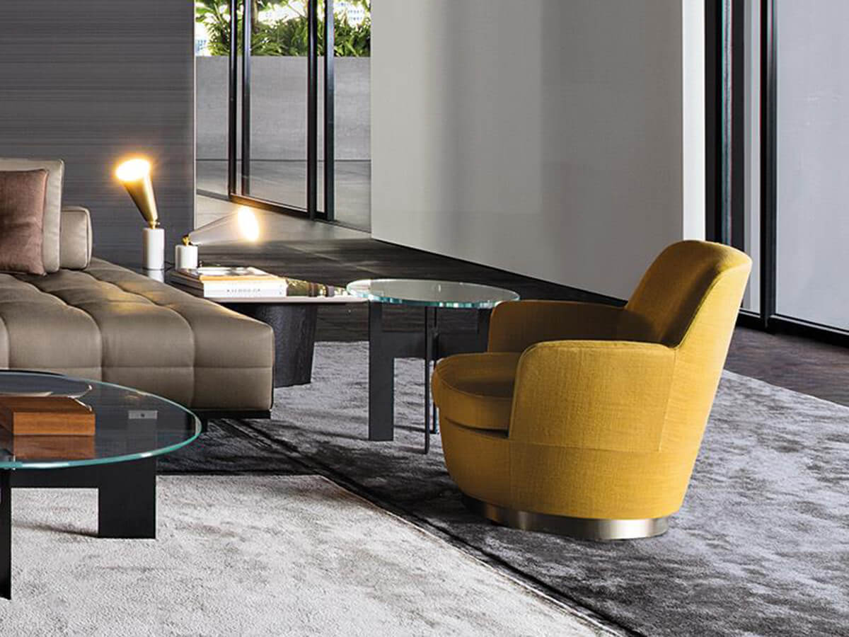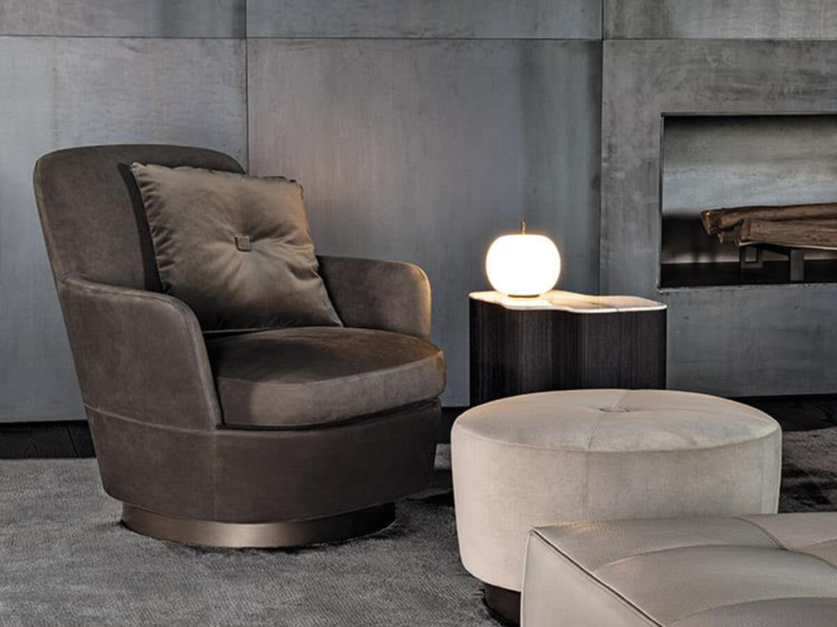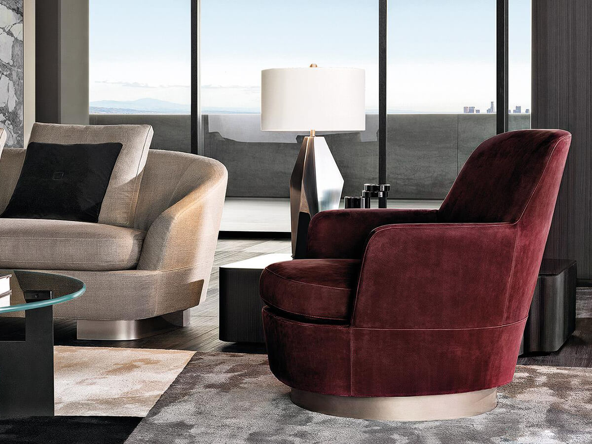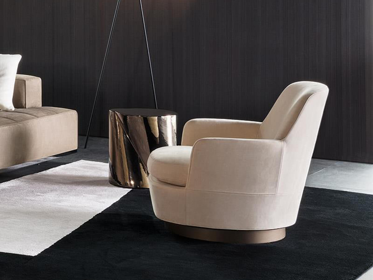 The Jacques line by Minotti includes numerous proposals for the living space designed to give life to a luxurious and contemporary furniture that does not however neglect a hint of retro taste. Among the numerous proposals of the brand we mention sofas, armchairs and ottomans in different sizes and finishes, created from the same design root that is expressed in soft shapes, gentle proportions and details of great visual impact that have always characterized Minotti craftsmanship. The sophisticated stitching outlines the silhouette of these upholstered items, whose rounded shapes create a play of contrasts between geometric volumes and more subdued harmonies. Among the numerous variations of this armchair, we mention the High, Low and bergère versions with swivel or fixed base.