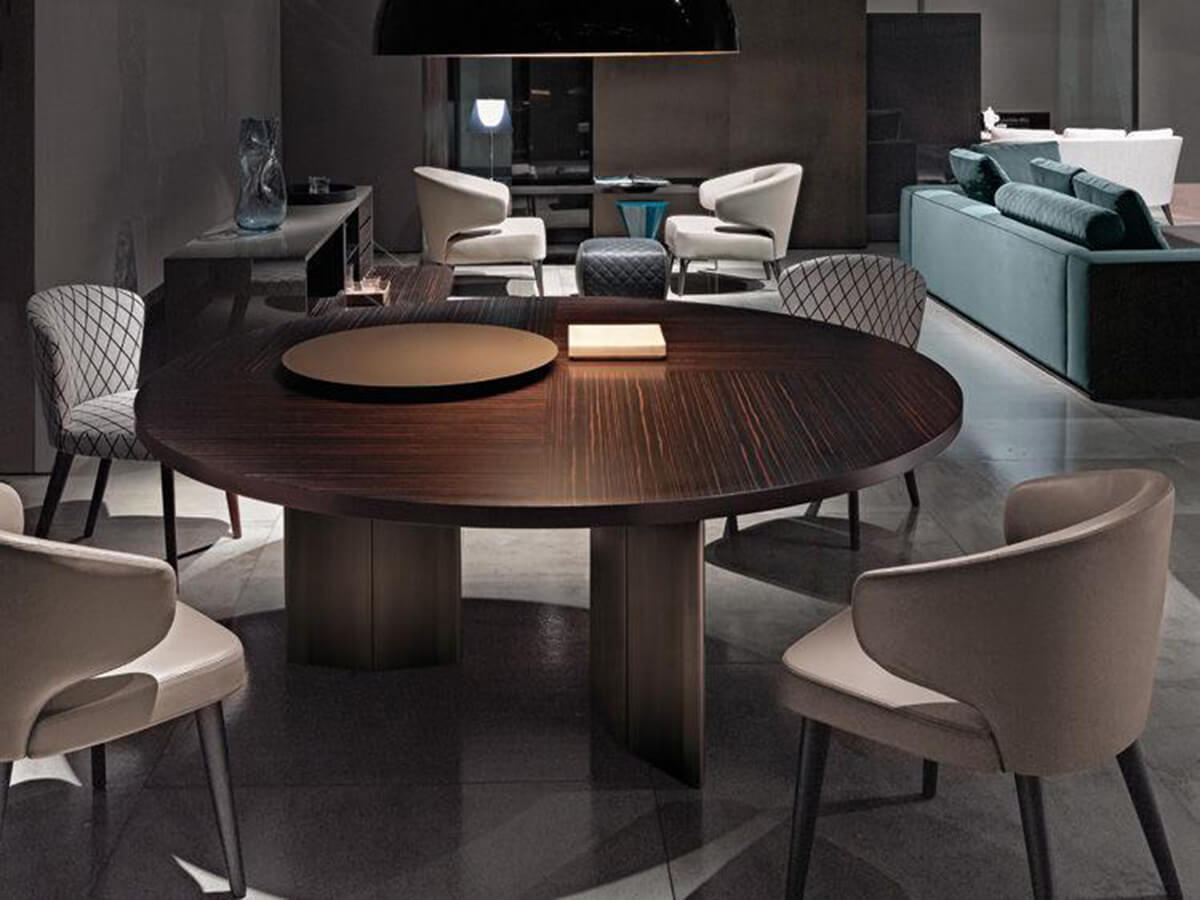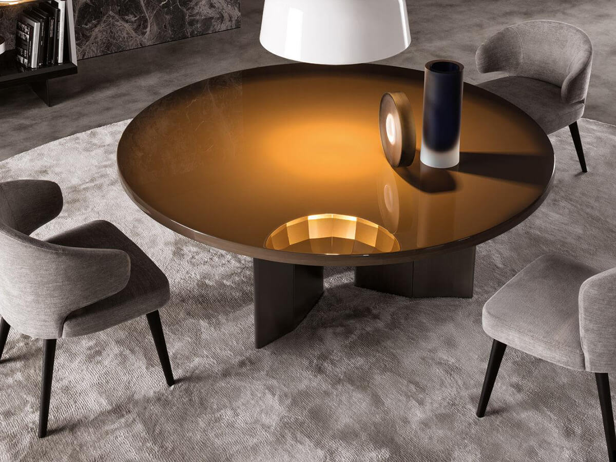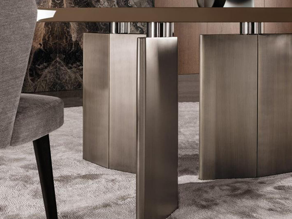 Morgan is a table whose inspiration comes from the traditional "fairy", denoted by two solid side legs joined together by a single joint. Rodolfo Dordoni's reinterpretation expresses a new contemporary key obtained thanks to highly refined formal solutions and combinations of noble materials. The supports in bronzed sheet metal stand out for the tapered rhomboidal section that gives it momentum and lightness. The top, on the other hand, fascinates for the peculiar flared edge available in different finishes of great value. The Morgan table is ideal for the living and dining area also and above all for the wide range of sizes and materials available that make it extremely versatile and adaptable to different needs.