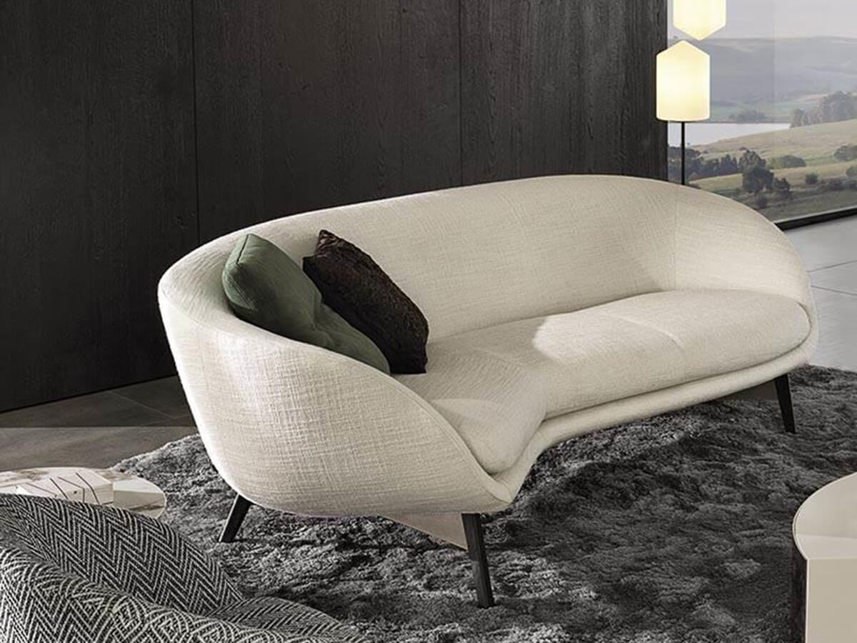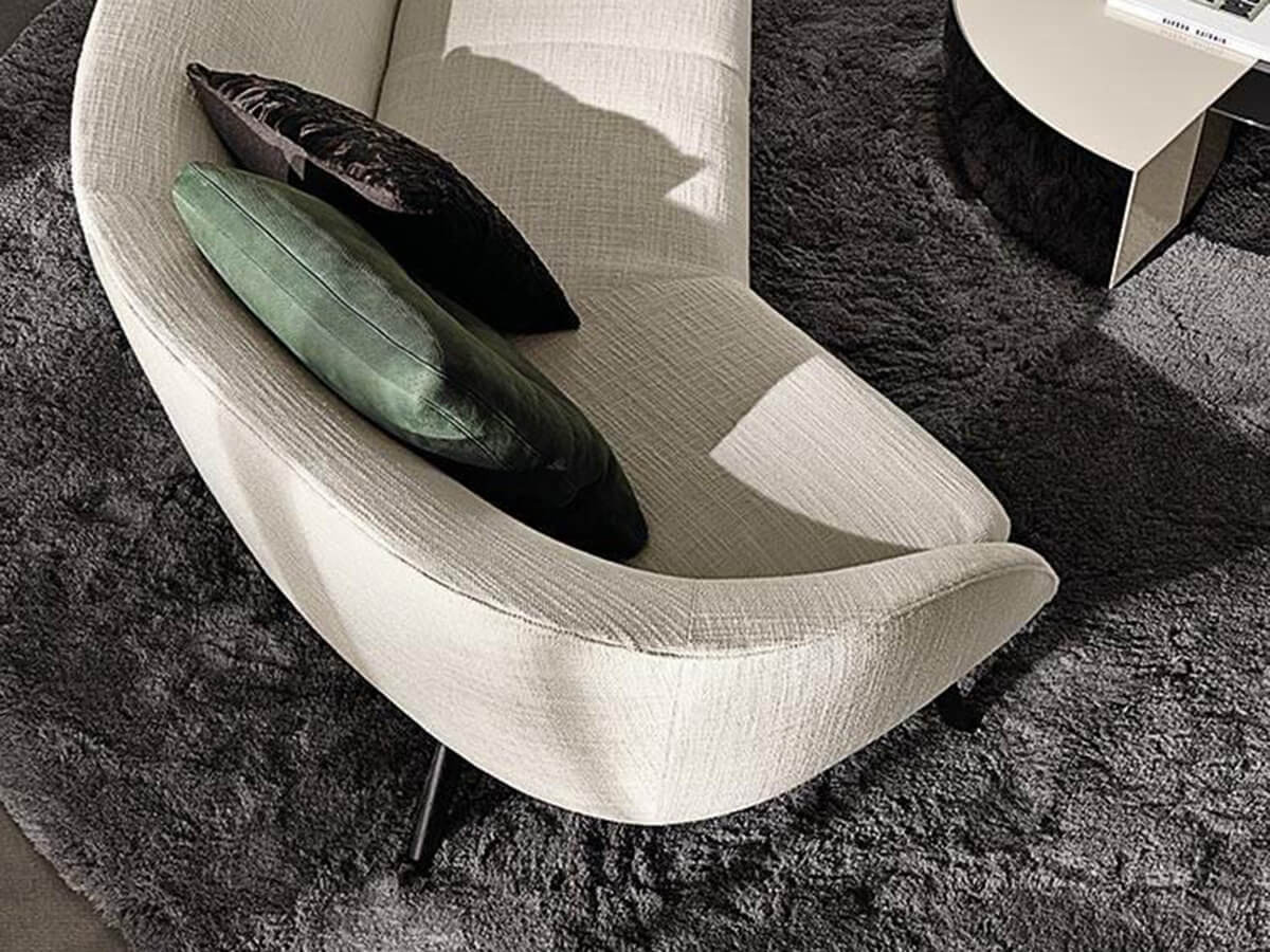 Russel seems to be a tribute to fashion and 1950s style composed, made up of elegant curves and sinuous vintage compositions. The homonymous by Minotti includes numerous seats declined in enveloping armchairs, lounge, dining and bergère armchairs, without however neglecting poufs, accessories and sofas. In each of these creations you can see the unmistakable line of the padded back that embraces and at the same time envelops the seat giving it an extremely intimate and comfortable appearance. The low cross-shaped metal base with sheathed feet is a detail that reflects Minotti's incredible craftsmanship in elaborating complex creations full of unique features. The company's catalog includes numerous colors for the completely removable leather and fabric covers.