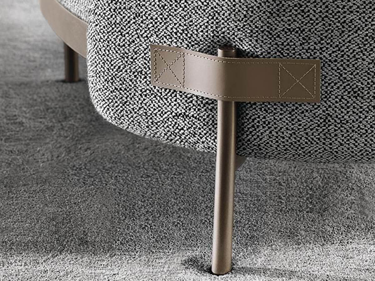 Tape is a collection of seats with a strong and distinct personality, capable of denoting itself in any room of the house. The Japanese studio Nendo declines it in numerous proposals that include armchairs with or without armrests, lounge armchair, bergère, two and three-seater sofa and pouf. Tape owes its name to the couture detail, intended as a fragment of tape capable of holding the metal feet, paying homage to Minotti's sartorial quality. Here comes the distinctive feature of keeping the supporting feet on the outside, visible as well as a separate part with respect to the cushions and the seat. The large and enveloping backrest encloses and combines the individual elements of the armchair, creating a harmonious sense of comfort and softness.
