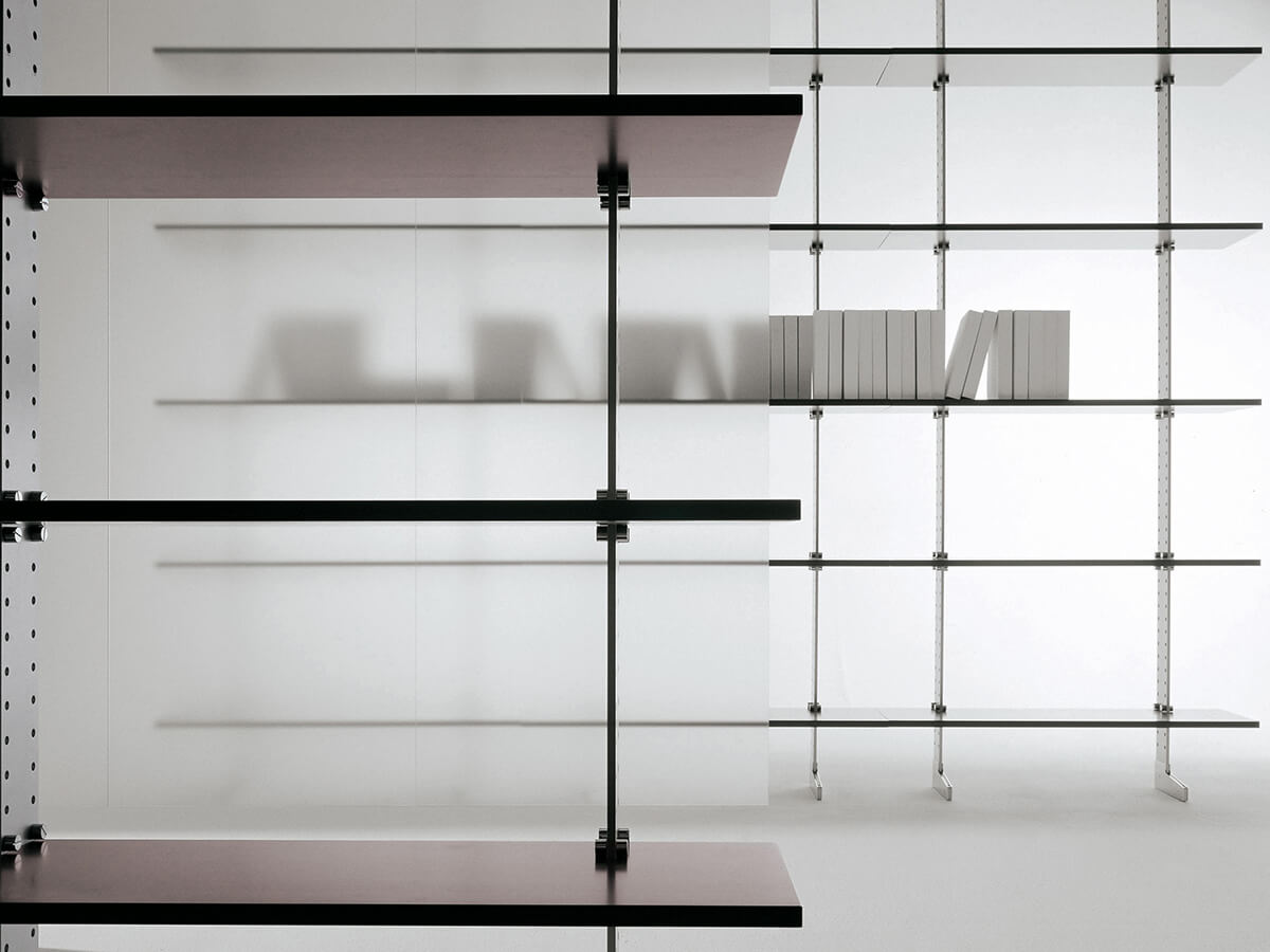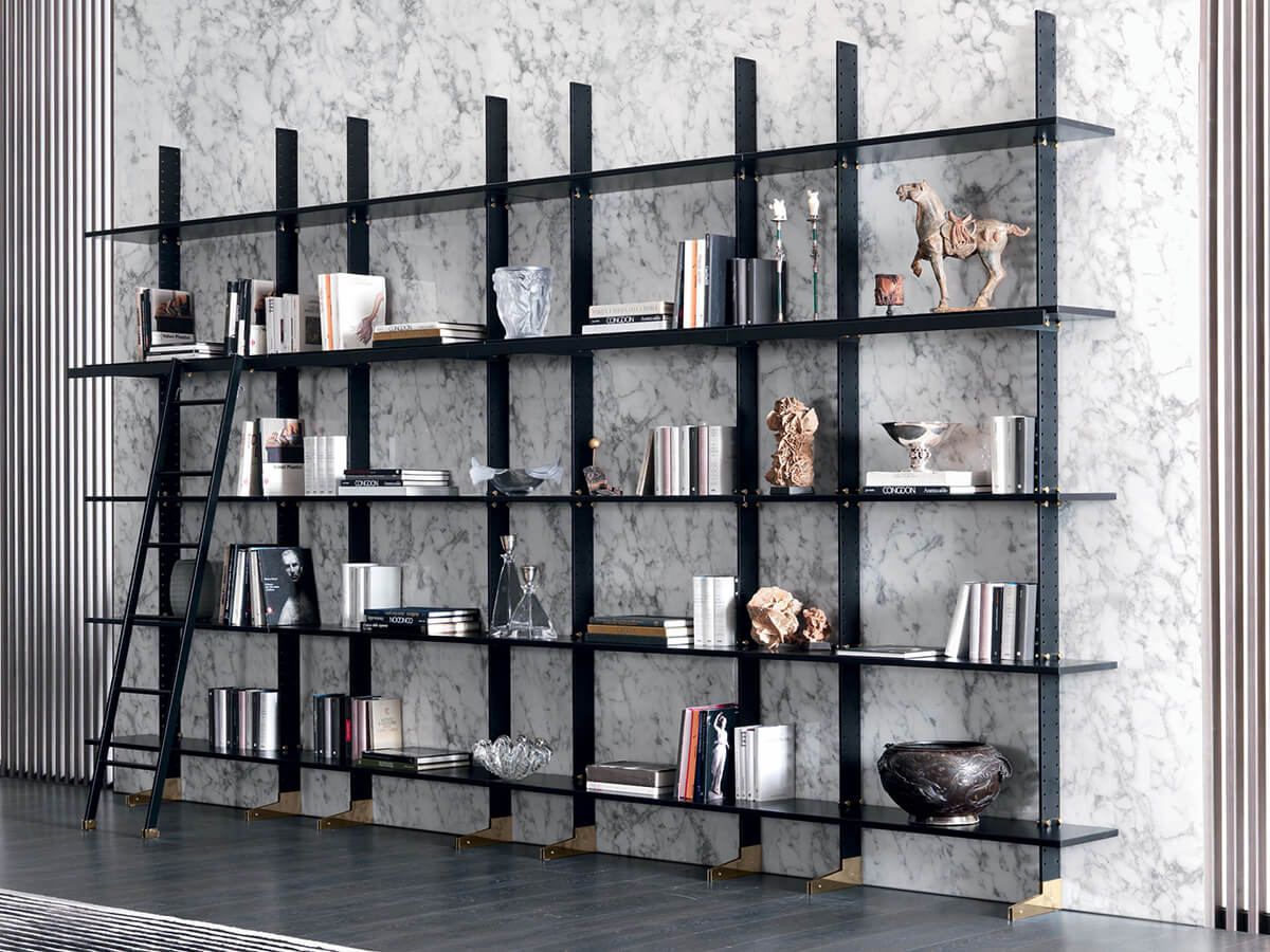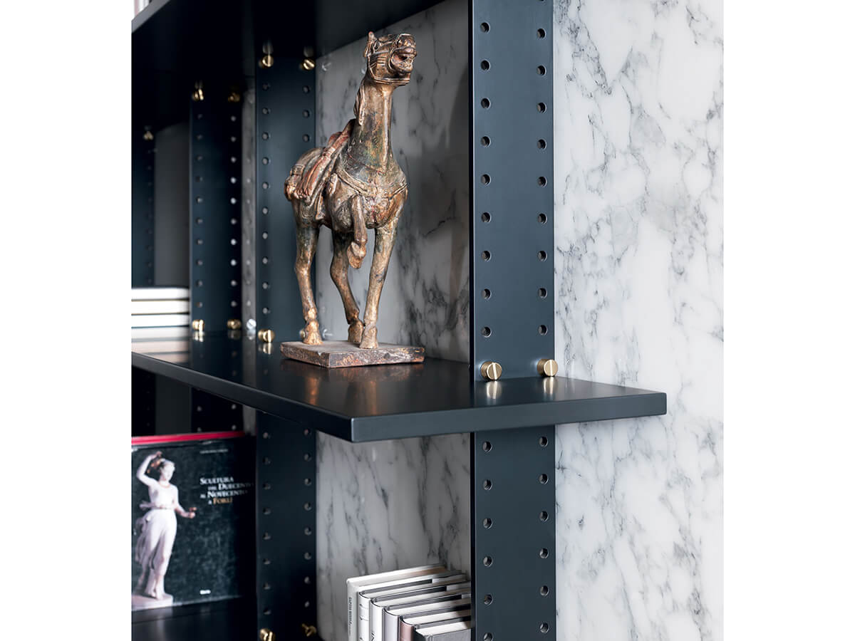 A re-edition of a historic 1949 project by Ignazio Gardella, as well as one of the first examples of high modularity at the highest levels. Elegie is a bookcase with a unique taste, perfectly recognizable, capable of placing itself effortlessly in heterogeneous environments. The upright, pre-drilled every 40 mm, is complete with plates and bolts for anchoring to the wall, so as to make Elegie both freestanding and on the wall. The shelves can be used as desks, TV tops or audiovisual equipment both for their generosity and for the solidity guaranteed by the use of drawn steel and fir. A piece of furniture that elegantly occupies living areas as well as studies, halls and bedrooms, according to taste.