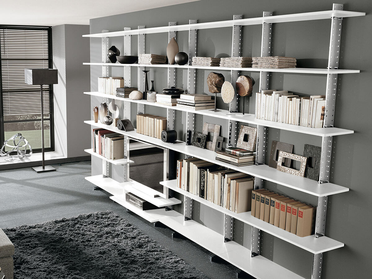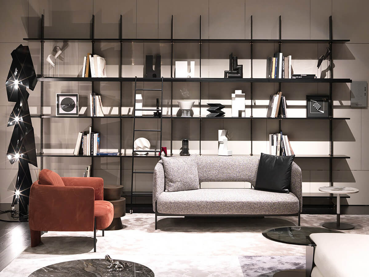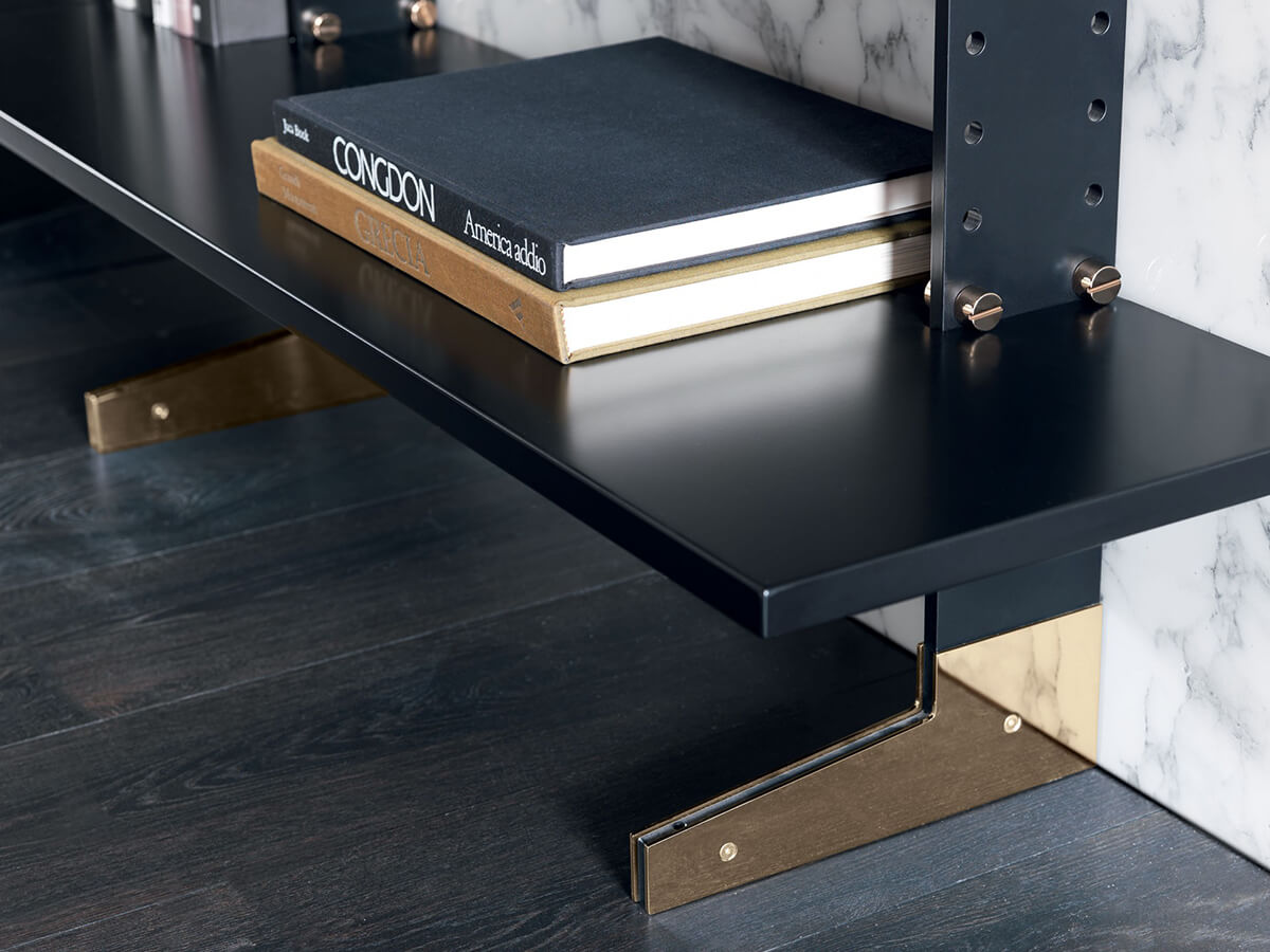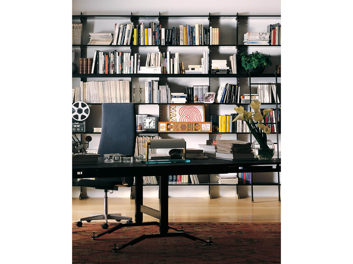 A re-edition of a historic 1949 project by Ignazio Gardella, as well as one of the first examples of high modularity at the highest levels. Elegie is a bookcase with a unique taste, perfectly recognizable, capable of placing itself effortlessly in heterogeneous environments. The upright, pre-drilled every 40 mm, is complete with plates and bolts for anchoring to the wall, so as to make Elegie both freestanding and on the wall. The shelves can be used as desks, TV tops or audiovisual equipment both for their generosity and for the solidity guaranteed by the use of drawn steel and fir. A piece of furniture that elegantly occupies living areas as well as studies, halls and bedrooms, according to taste.