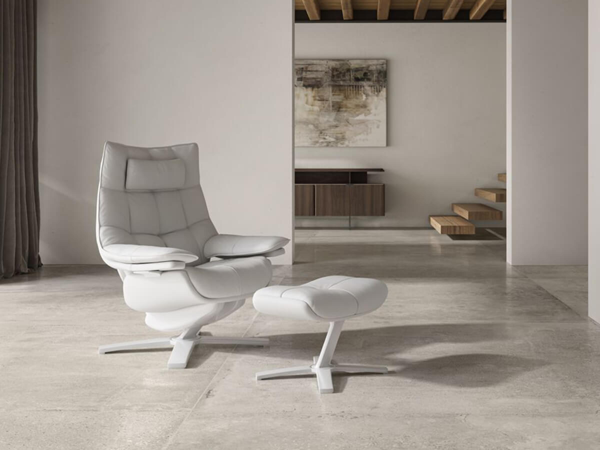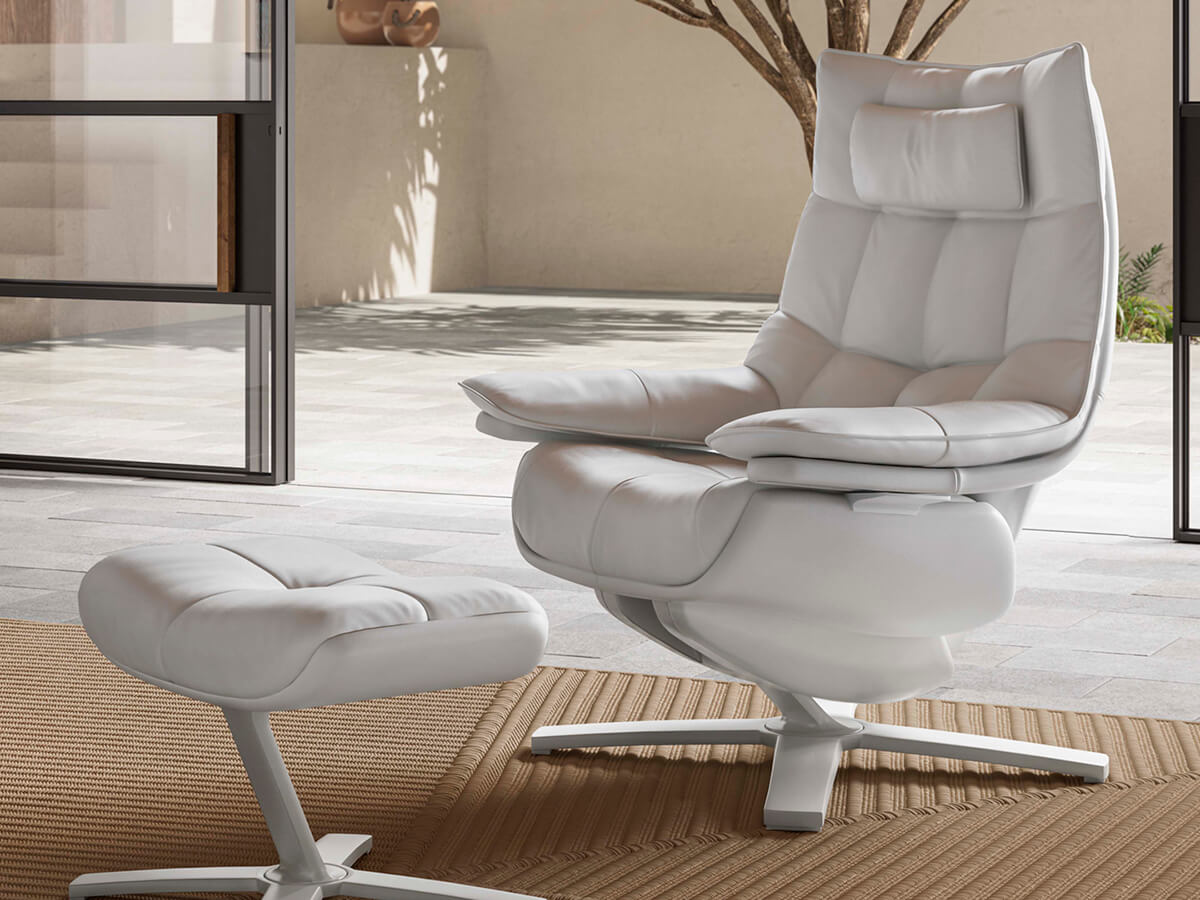 An armchair totally Made in Italy, with absolute comfort and captivating design. This chair responds to the natural needs of the body, accompanying every movement without the use of handles and accessories. It is an evolution that marks the world of relaxation armchairs, giving a new idea of superior comfort, perfect for any need. Personalization is another discriminating element, made up of an infinite range of details that Natuzzi makes selectable to better match the taste of the individual. In short, Re-vive is the perfect element for those looking for a unique, personal, meaningful, comfortable and extremely versatile object for their living space but not only.