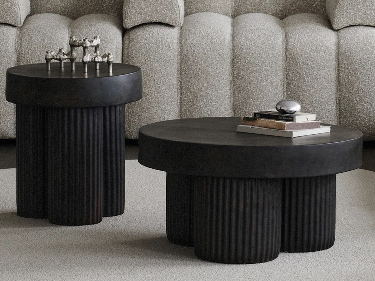 A unique furnishing element, which seems to combine design and sculptural imaginative capacity in a whole of great beauty. The strong and solid structure of this coffee table is fiber-reinforced concrete to improve its performance and resistance over time. The design seems to be inspired by the brutalist architecture of the mid-twentieth century, enhanced by the choice of strong colors that better outline the structure. The top is thick as the supporting legs, three in total, joined almost to form a second monobloc. The concrete gives the table a structure and a particularly pleasant tactile texture, further accentuated by the wave-like workmanship of the legs. Ideal for any room in the house, this coffee table does not disdain even more heterogeneous uses thanks to its particular design.