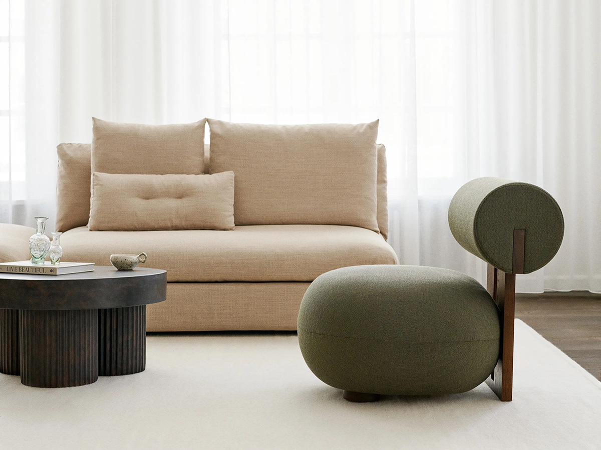 An armchair with soft and playful shapes, which seems to deliberately recall the face of some animal or more simply the softness of its body. The seat rests on two sturdy legs and on a wooden profile that connects the seat and the backrest, in strong contrast with the softer and more generous shapes of the upholstery that welcome the body. Norr11 created this armchair and then declined it in numerous colors and finishes to make it as versatile as possible. For this reason, Hippo Lounge adapts well to different contexts such as the bedroom but also the living area, offering a tasteful variant for more convivial spaces. The reference to the hippopotamus is not immediate, but in any case it seems aimed at giving a more playful tone to the whole.