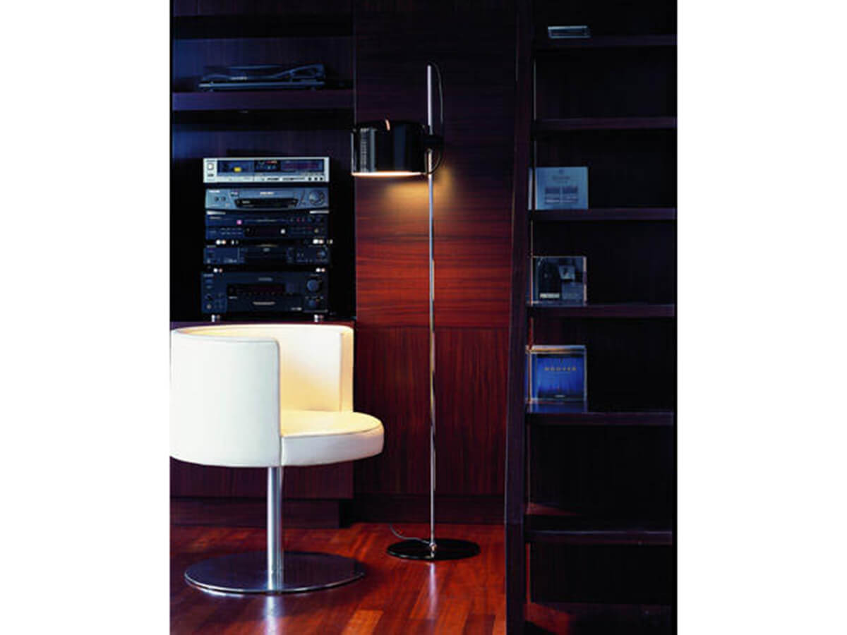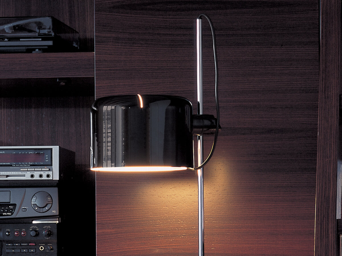 Coupé was born from the genius of Joe Colombo, an article initially conceived as a variant of the Spider family, of which it retains the same base and stem. Coupé, however, stands out for its simple and ingenious design to which is added the mechanism that connects the stem to the head so as to be able to direct the light beam in different directions, moving the cap up, down or sideways. The functionality is therefore optimized, as well as the strong customizable value. Coupé is available in numerous variants including one with a semi-cylindrical shell and one with a semi-spherical shell. In addition to the numerous colors available, it is a floor lamp capable of imposing its own style in any room of the house.