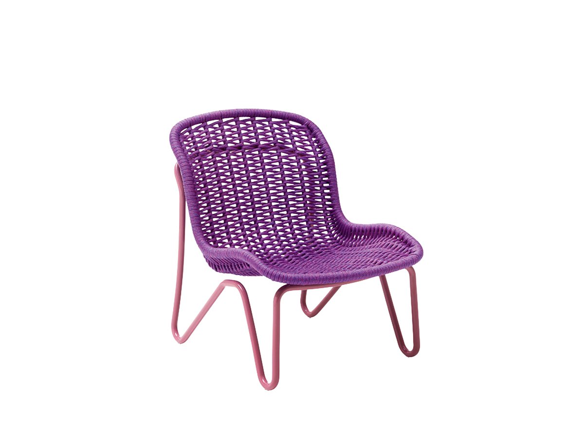Clara Porset designs for Paola Lenti a refined outdoor armchair that gracefully incorporates a few elements which enrich and enliven its overall form. Particularly distinctive are the legs, shaped from a single bent aluminum tube that forms not only the base but also the backrest and even part of the seat. The shell is upholstered with hand-woven rope in Twiggy yarn. Jardin is a perfect example of comfort and functionality combined through the use of color—an element that has always characterized Paola Lenti’s catalog, unique for its originality and its ability to carry the imagination toward unexpected horizons. Ideal for those who love spending time outdoors, these seats offer comfort and serenity.