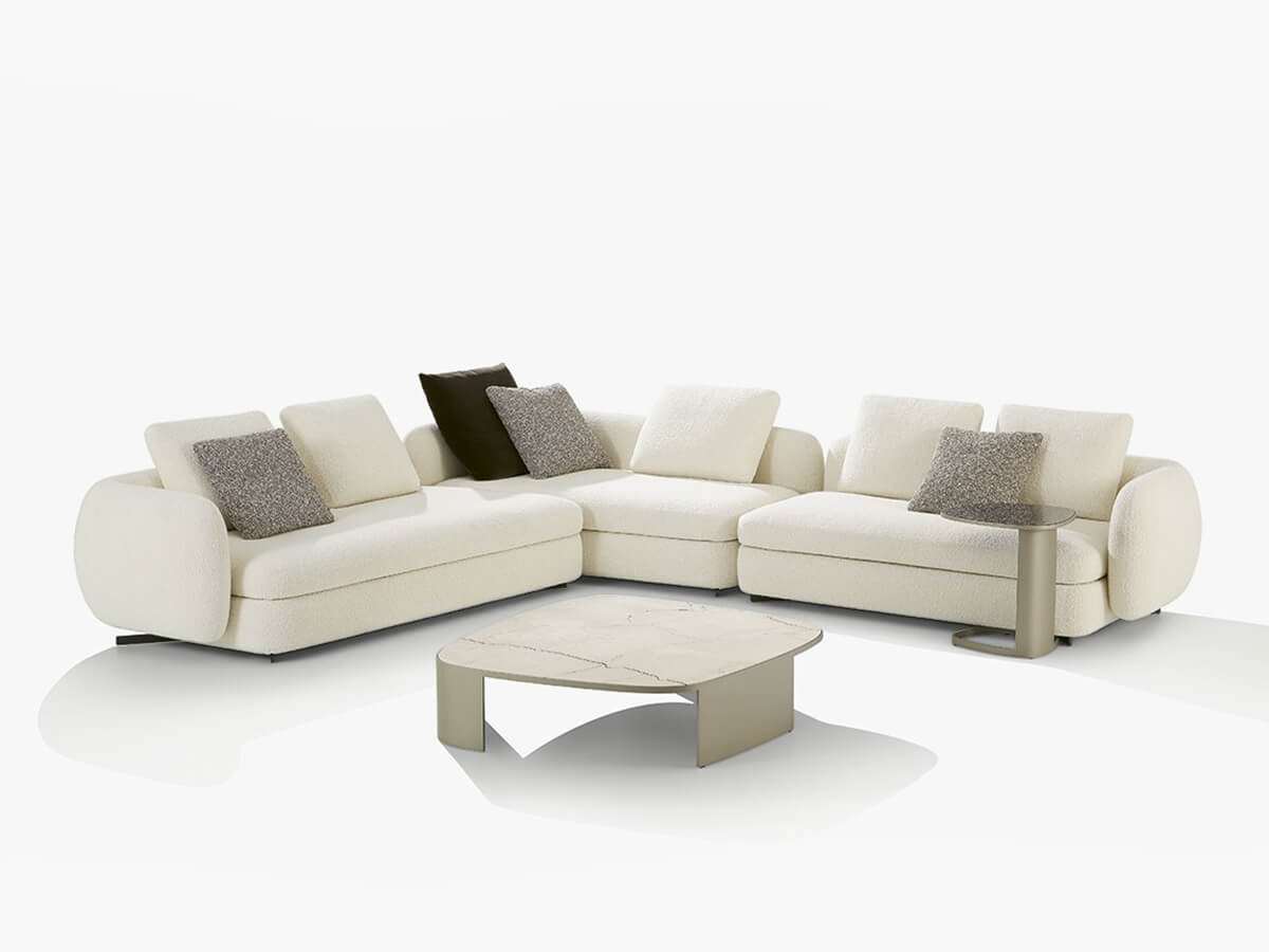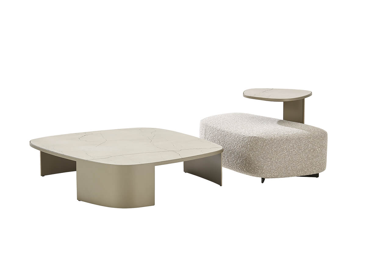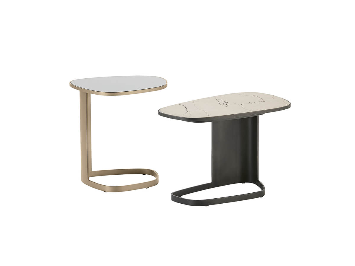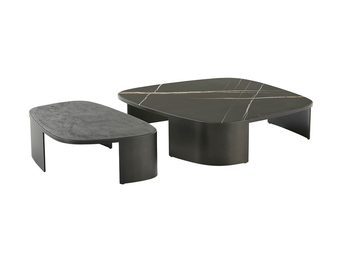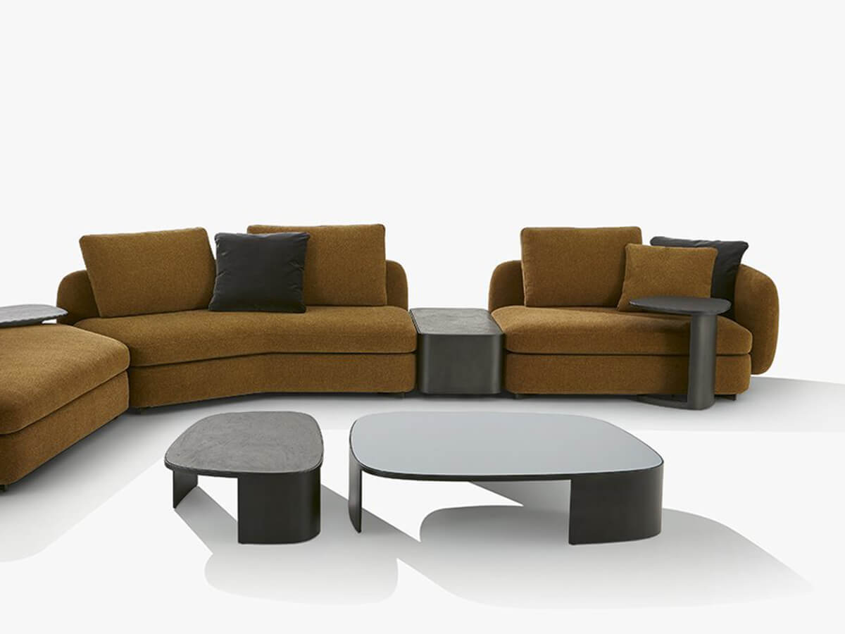 To talk about Koishi we must necessarily mention the Saint-Germain system, modular sofa and armchairs whose upholstered elements are distinguished by sinuous and sensual shapes. This coffee table was born as a natural completion of the collection not only for the recall of the lines, also rounded and softly sinuous, but for the organic shape and conceptual elegance. The painted metal structure forms a solid base for the top in ebony stone, marble, reflective glass or more according to taste. The preciousness of this last element is found in all the variants of Koishi, both the free-standing ones and those that can be combined with upholstered furniture.