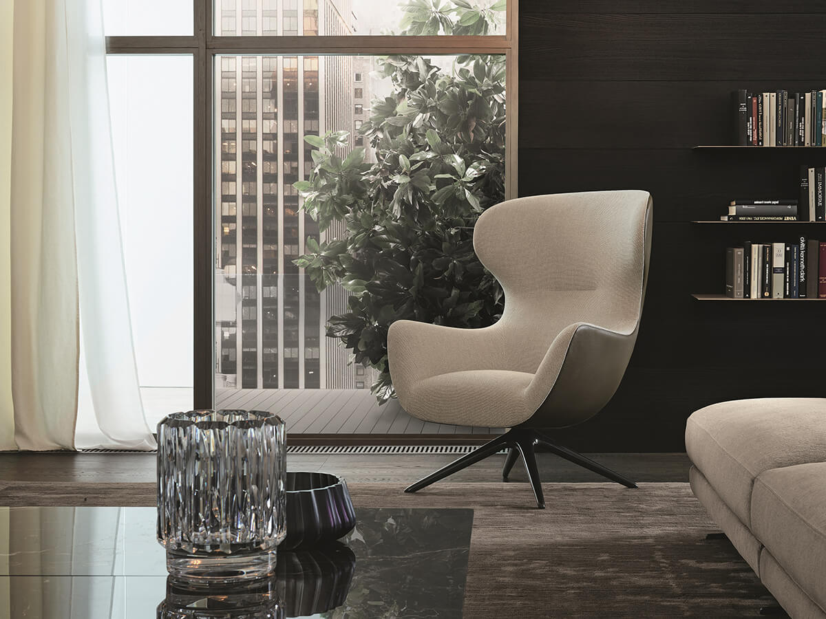 The Mad collection by Poliform includes numerous furnishing elements for the home, ranging from the living area to the night area in a complete assortment of proposals. We mention here tables, coffee tables, sideboards, ottomans and chairs. Each of these works differs for a distinctly eclectic taste, capable of satisfying the most heterogeneous requests. Mad Joker is an enveloping and extremely comfortable armchair, whose large wings on the back welcome the head, ensuring a relaxing experience that is difficult to match. With the addition of the ottoman, Joker expresses the best of its potential. The structure in flexible molded polyurethane, extremely resistant, is here associated with a wide choice of finishes in fabric or leather, depending on the taste.
