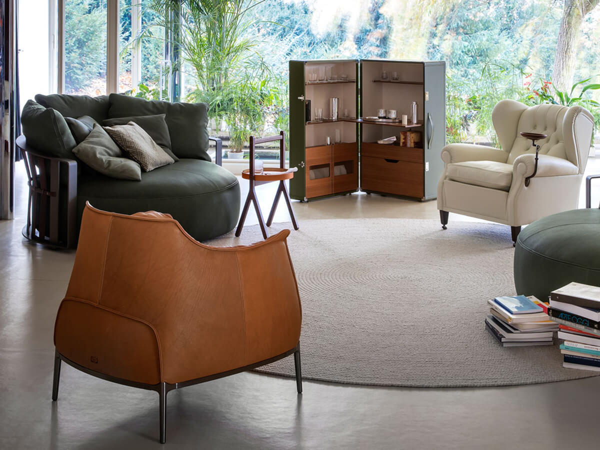 Poltrona Frau brings in any kind of environment, from home to office, its characteristic taste for leather-covered furnishings. The company grew out from the intuition of Renzo Frau who, moving in Torino, founded his workshop in the late 19th and 20th centuries. The Piedmont city was the ideal stage for the proposals of the young entrepreneur.