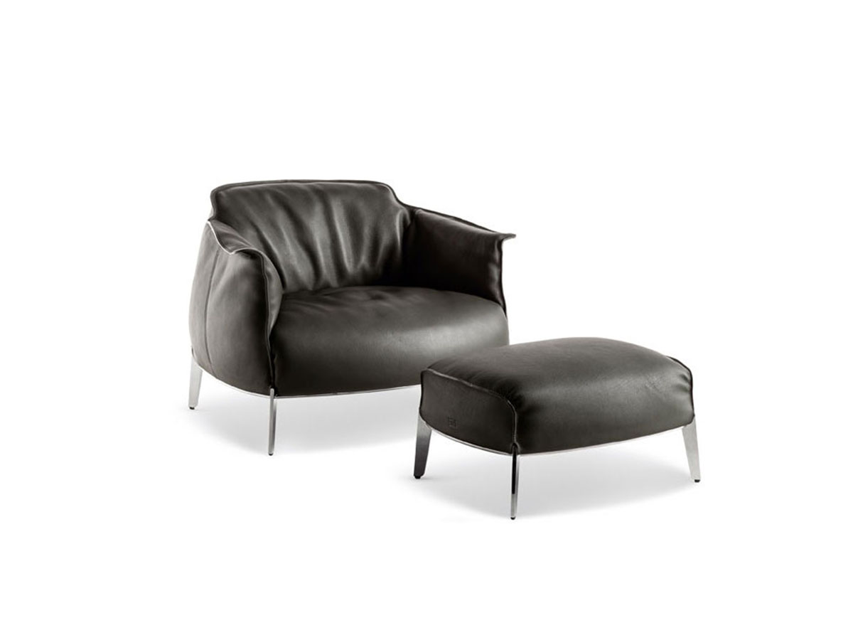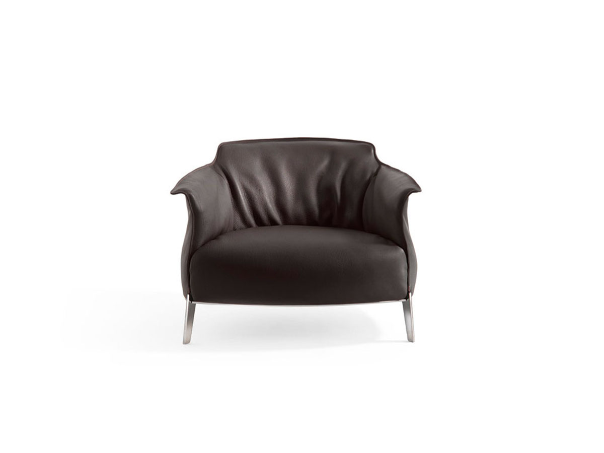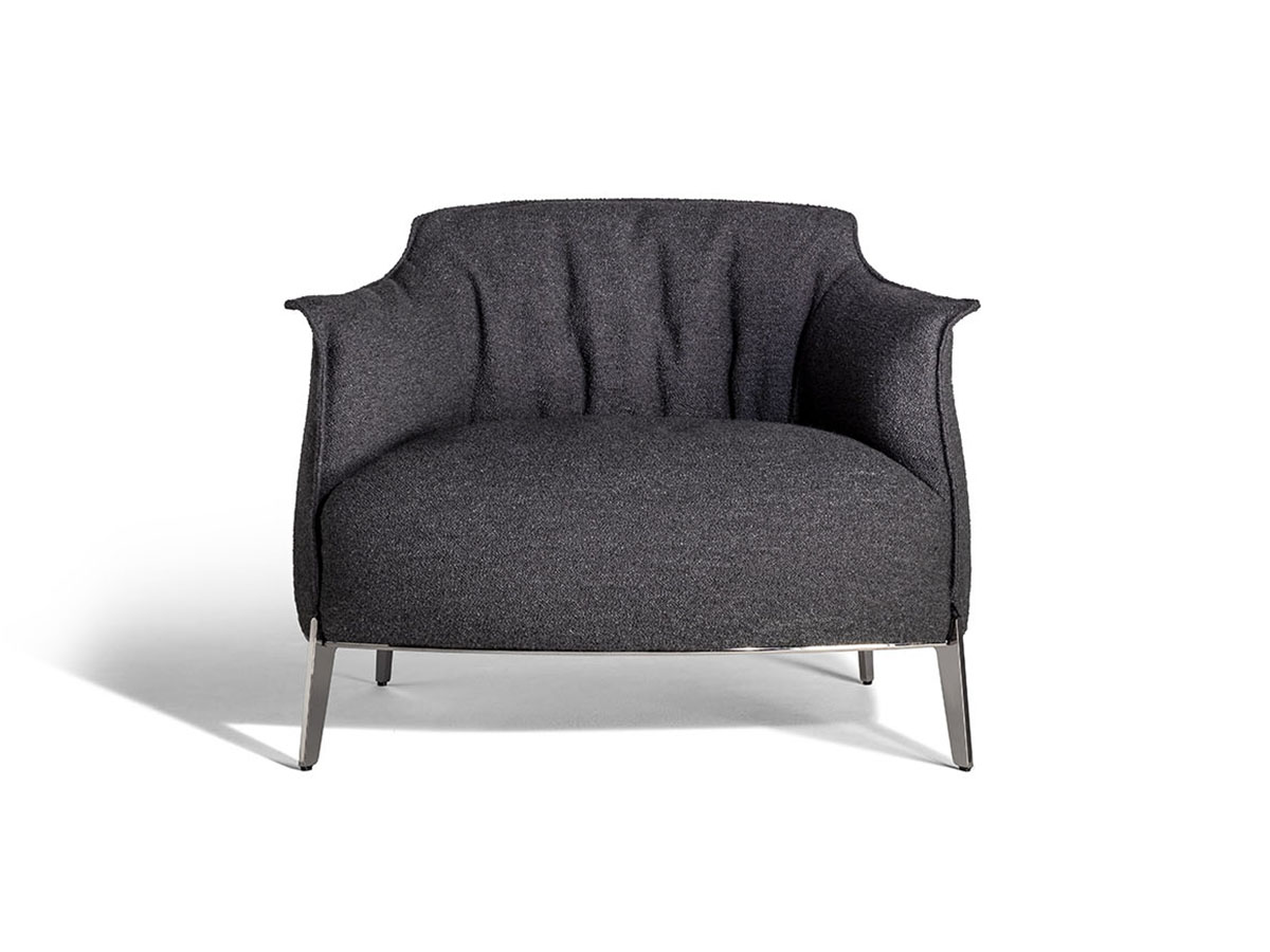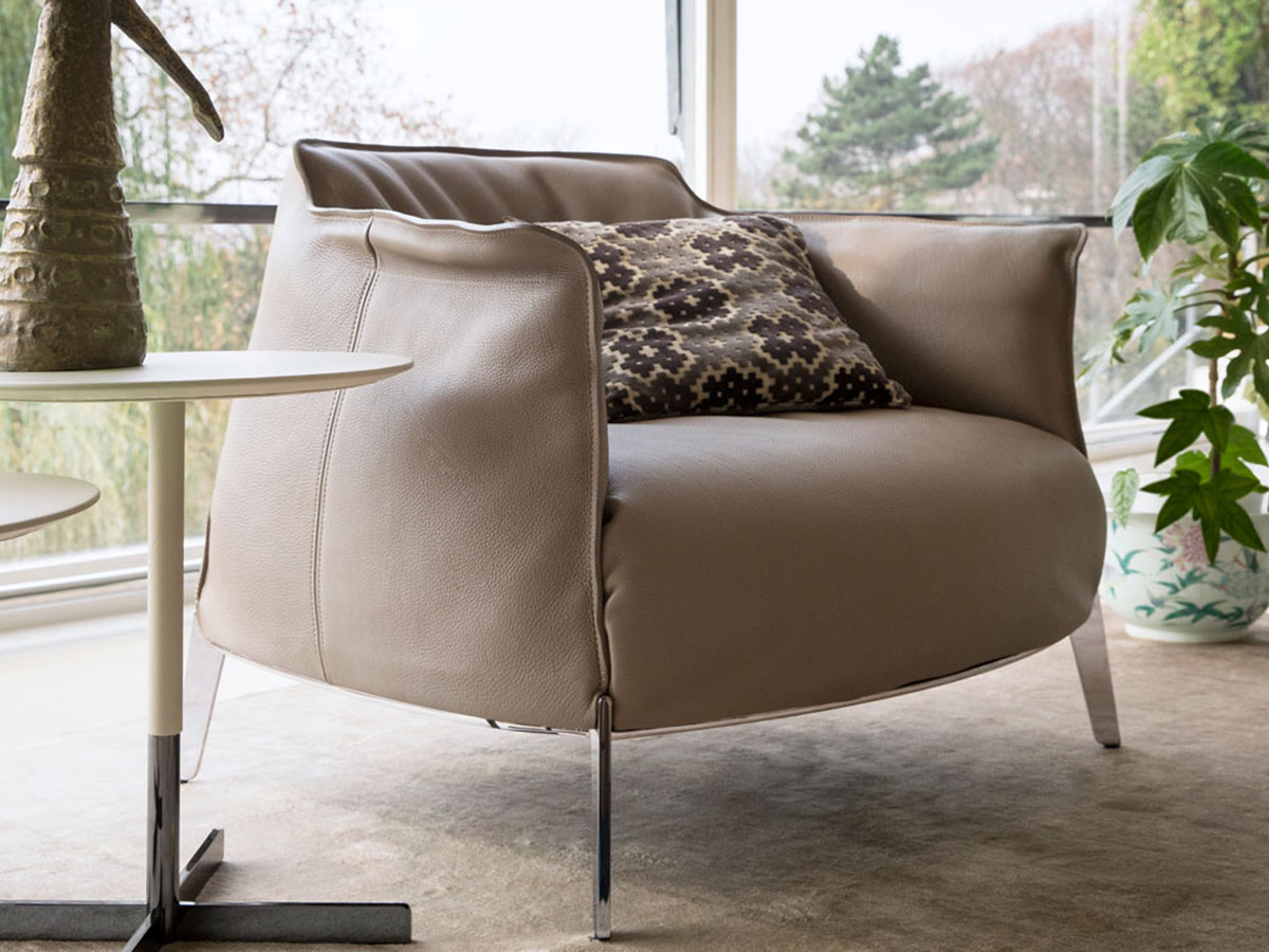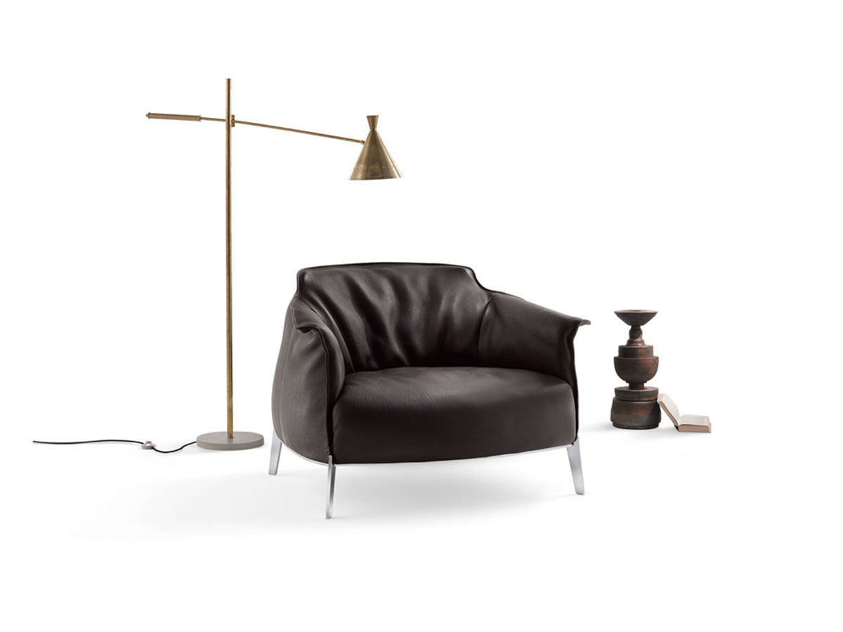 One of the timeless classics that has made Poltrona Frau an example of elegance and masterful furnishing design. From the design of Jean Marie Massaud comes Archibald, an armchair that summarizes form and substance in a single context. The comfortable and enveloping line of this collection invites meditation and relaxation, offering an object that is well suited to different domestic contexts, as well as to more community spaces such as waiting rooms, hotel lobbies and more. The Archibald leather upholstery, pleasantly moved by a play of vertical folds, is embellished along the edges and on the external surfaces by contrasting stitching that give a note of refined elegance.