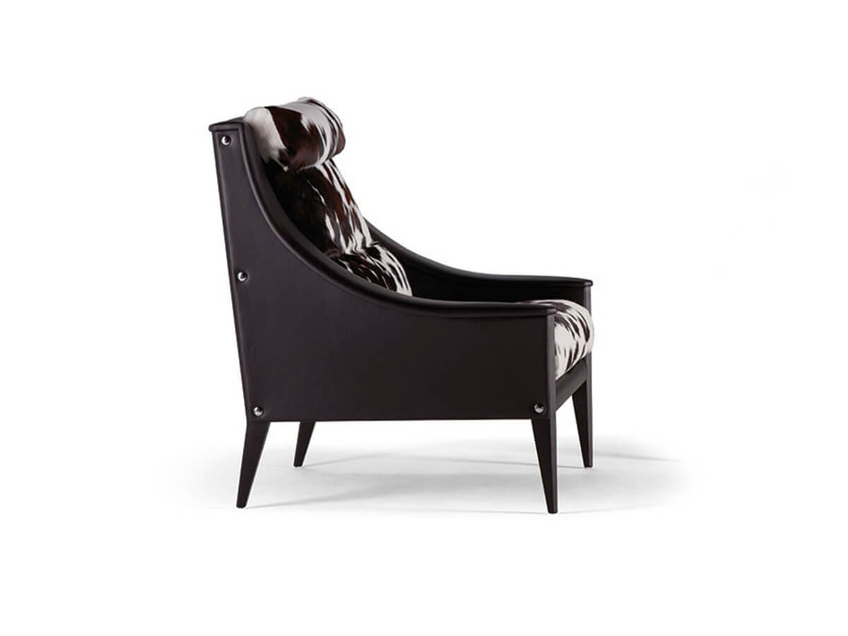 Like the sofa of the same name, the Drezza armchair represents a successful example of elegance, design quality and structural refinement. Since 1965 it has been able to keep its charm unchanged, giving suggestions of a timeless design both from a formal and methodological point of view. The traditional triangular section leg has become a cornerstone of the sector. The Dezza armchair is comfortable and easy to adapt to any environment thanks to the thin armrests that make it possible to combine two or more elements. Armchair 48 is equipped with a goose down headrest integrated into the backrest. The Pelle Frau® leather upholstery enhances the quality of the shapes, giving a touch of strong personality to the structure as a whole.