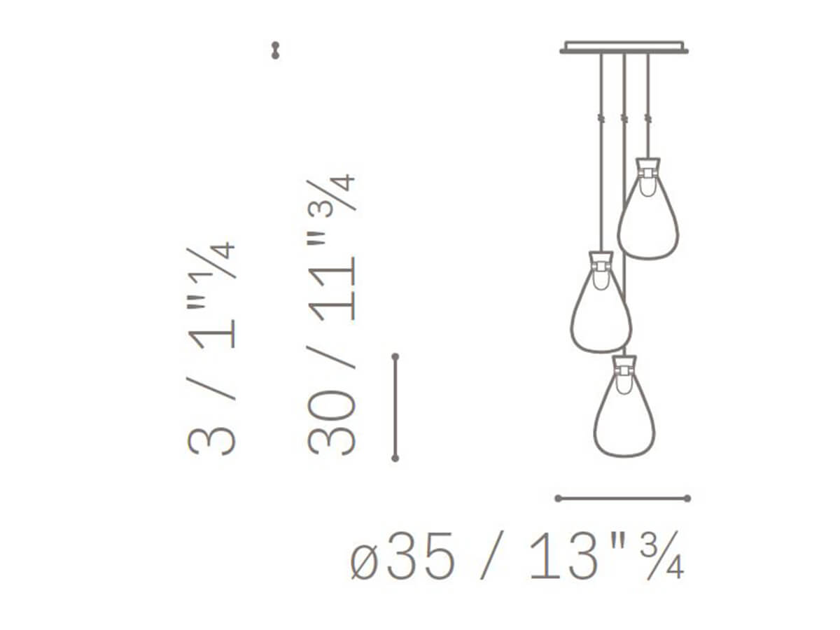*Price valid for the cluster composition Type A with n. 03 single elements Small in ø 18 x H.30 cm with bracelet in saddle leather Saddle Extra – shade in blown glass – metallic parts in brass – bulbs excluded (cod. 5639540 - 5PF0063917703).