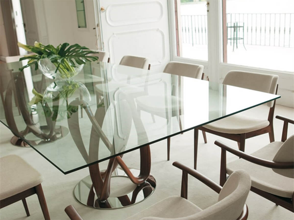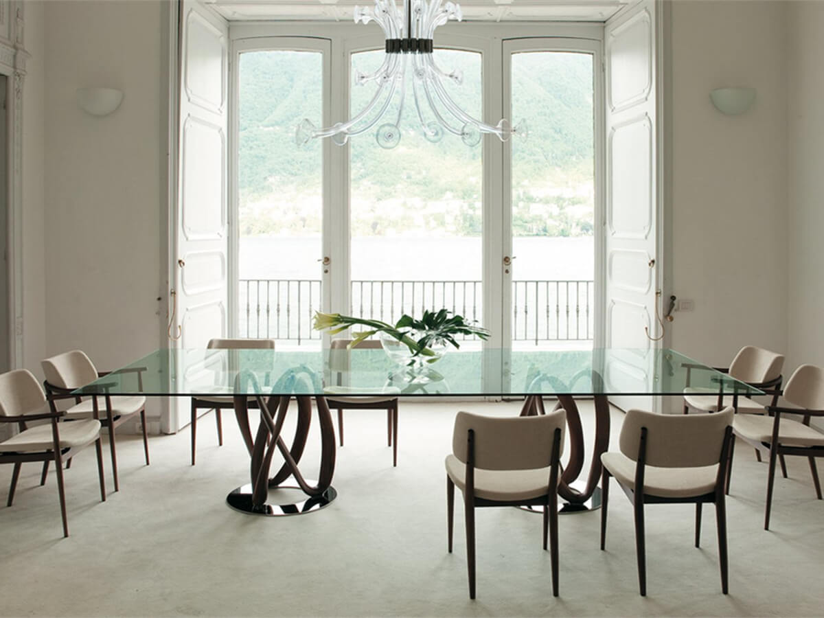 A table capable of expressing itself in different dimensions and perspectives, ideal for those who want to give their living room a touch of material and at the same time impalpable. Infinity is available in round, elliptical, square shape and more, to better adapt to different contexts. The beauty of the transparent top creates a perfect dichotomy with the legs in solid ash wood stained in different colors. The base supports the structure creating an additional mirror, in a succession of refractions and contrasts. The resultant is extremely pleasant and delicate, perfect for tastes of all times. Technical features: plate under the base available in chrome, black chrome, pewter gray or brushed brass finish